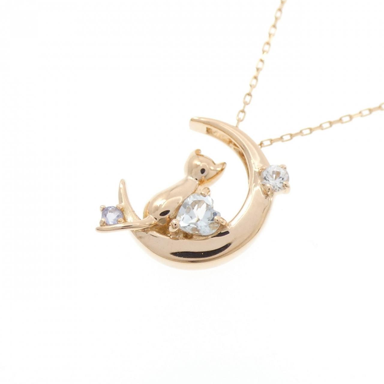 Au750 Cat Moon Color Stone Necklace