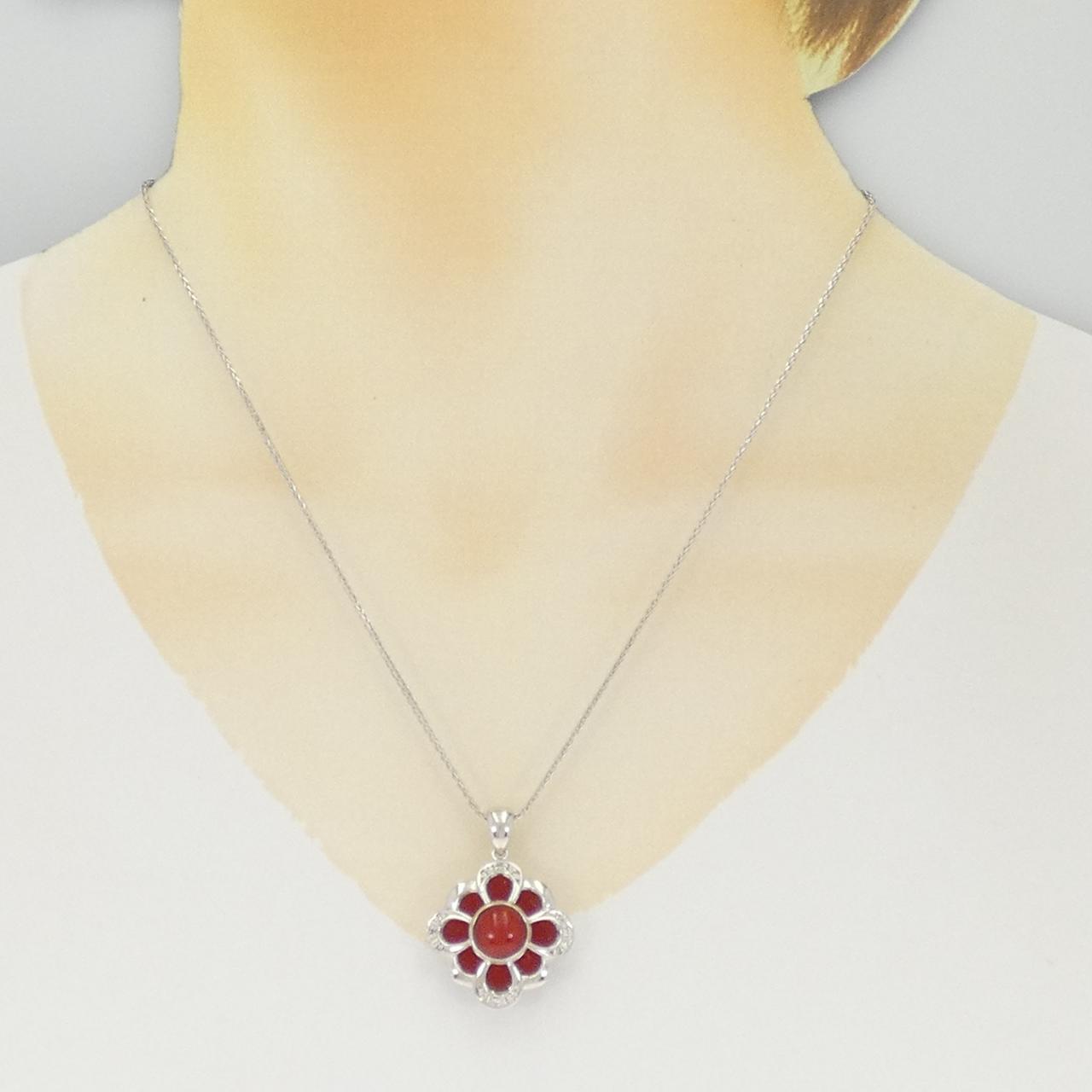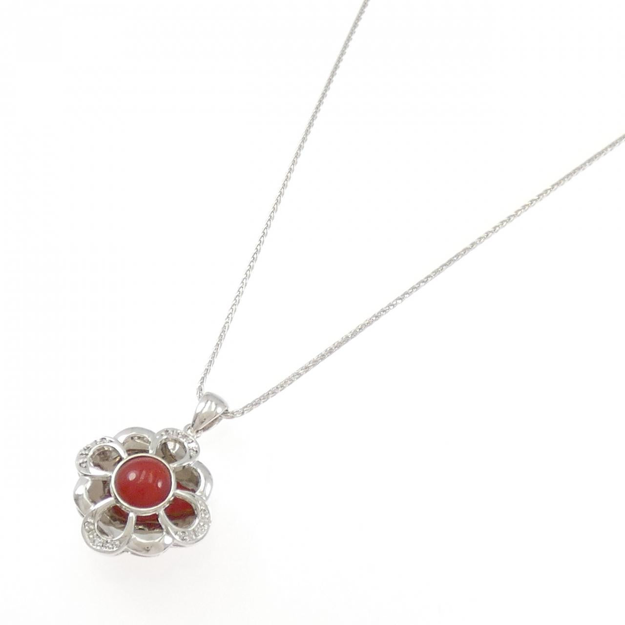 Au750 White Gold Coral Diamond Necklace