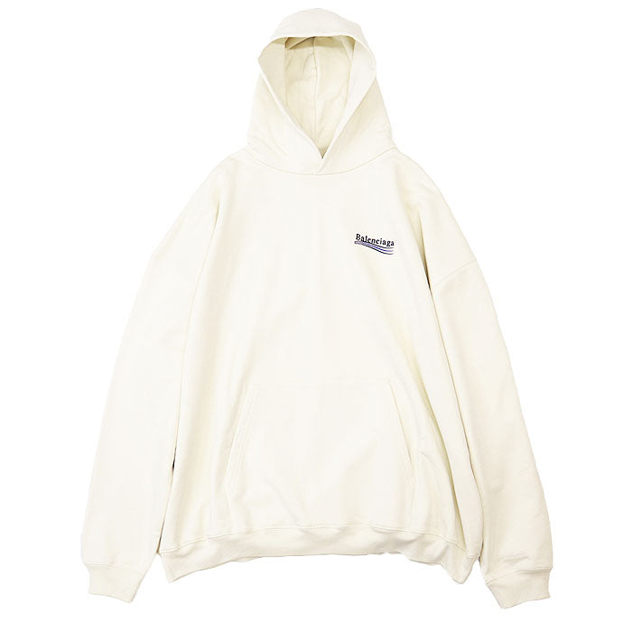 Embrace effortless style with this Balenciaga hoodie. Crafted from soft cotton, it offers ultimate comfort and a relaxed fit, perfect for everyday wear. The iconic Political Campaign logo adds a touch of modern edge. Elevate your casual wardrobe with this versatile piece, designed for the discerning woman who appreciates quality and understated luxury.