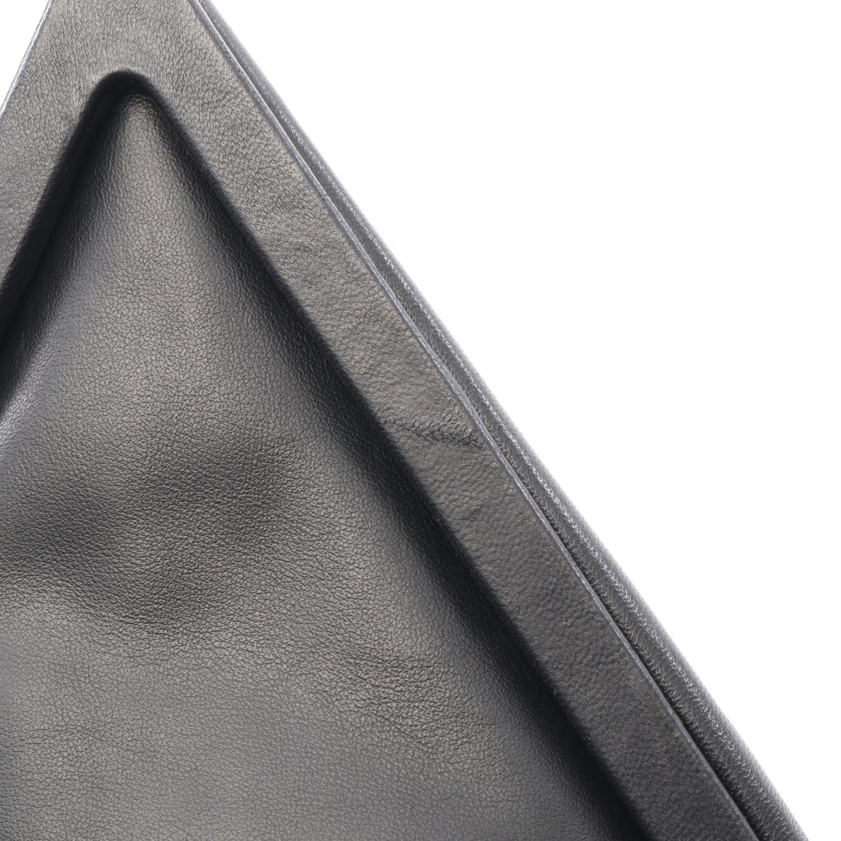 Indulge in the understated elegance of the Bottega Veneta Triangle Flap Clutch. Crafted from supple leather, this luxurious bag is the perfect everyday companion. Its sleek, modern design effortlessly complements any outfit, while providing ample space for your essentials. Carry it by hand or wear it on your shoulder for a touch of effortless sophistication.