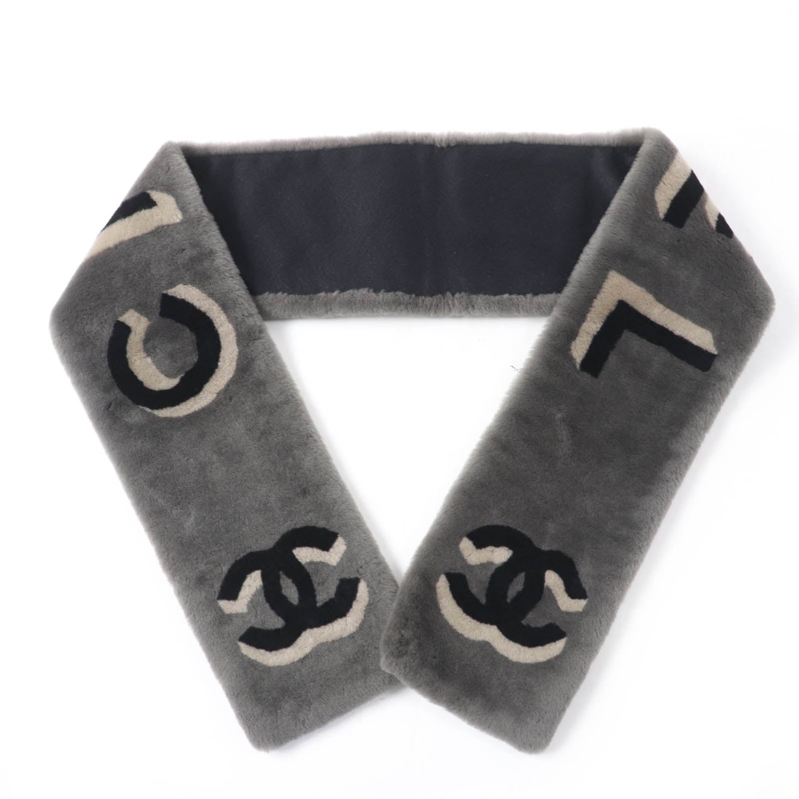 Chanel COCO Mark Logo Design Mouton Cashmere Shawl