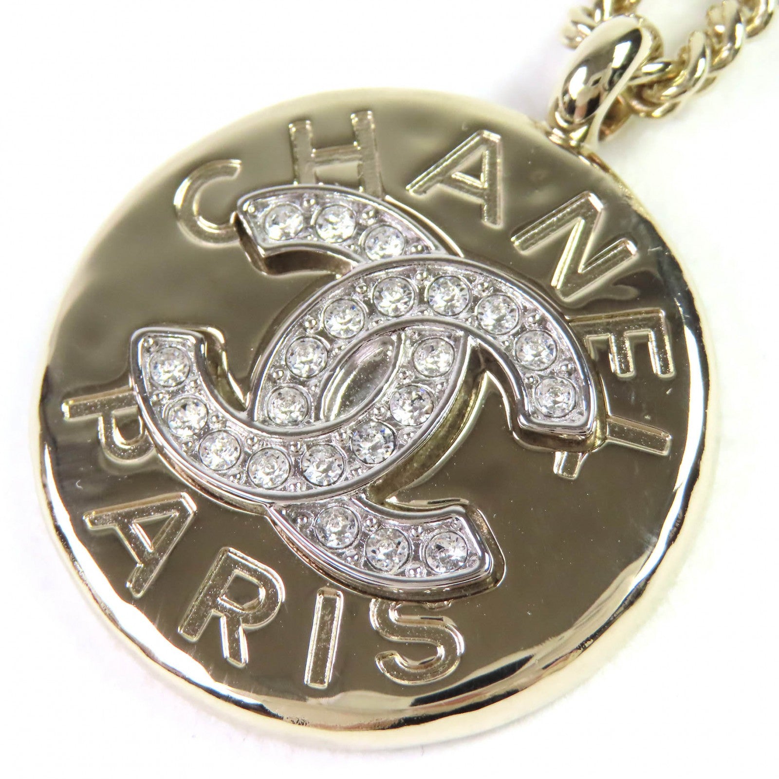 Chanel COCO Mark Rhinestone Logo Medal Necklace