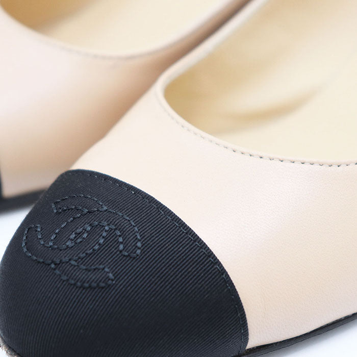 Indulge in timeless elegance with these Chanel ballet shoes. Crafted from supple calfskin, they offer exceptional comfort and sophisticated style. The modest heel provides a subtle lift, perfect for everyday wear or dressing up a casual outfit. A versatile addition to your wardrobe, these shoes exude effortless chic and understated luxury.