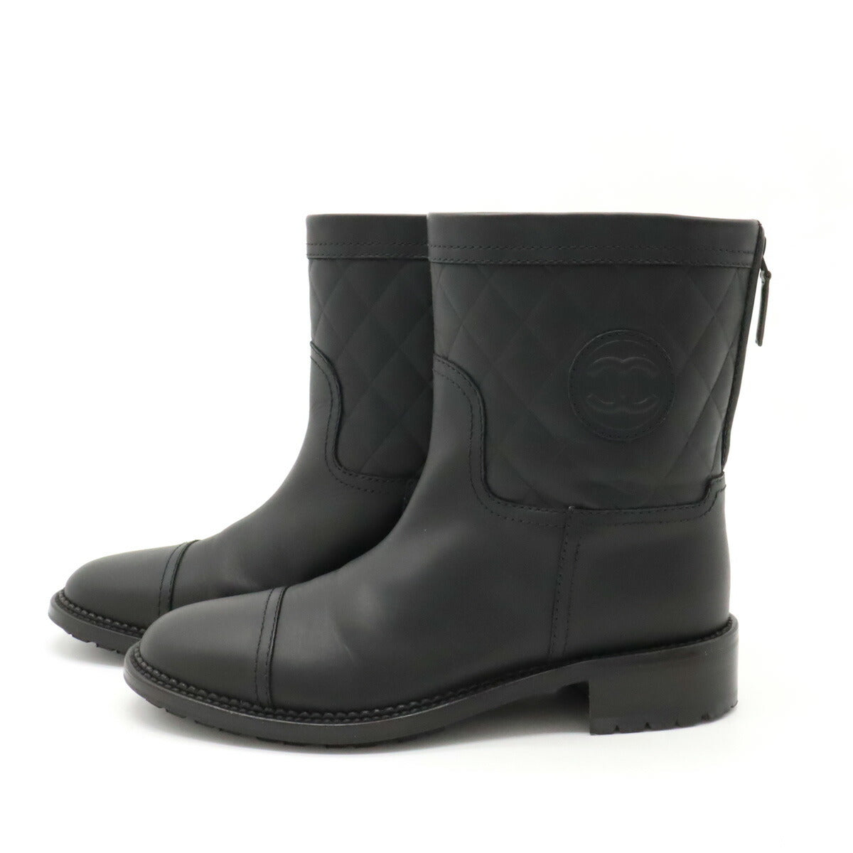 Chanel Matelasse Coco Mark Leather Mid Boots