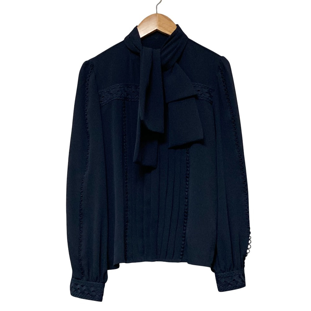 Chesty Bow Tie Pleated Long Sleeve Shirt