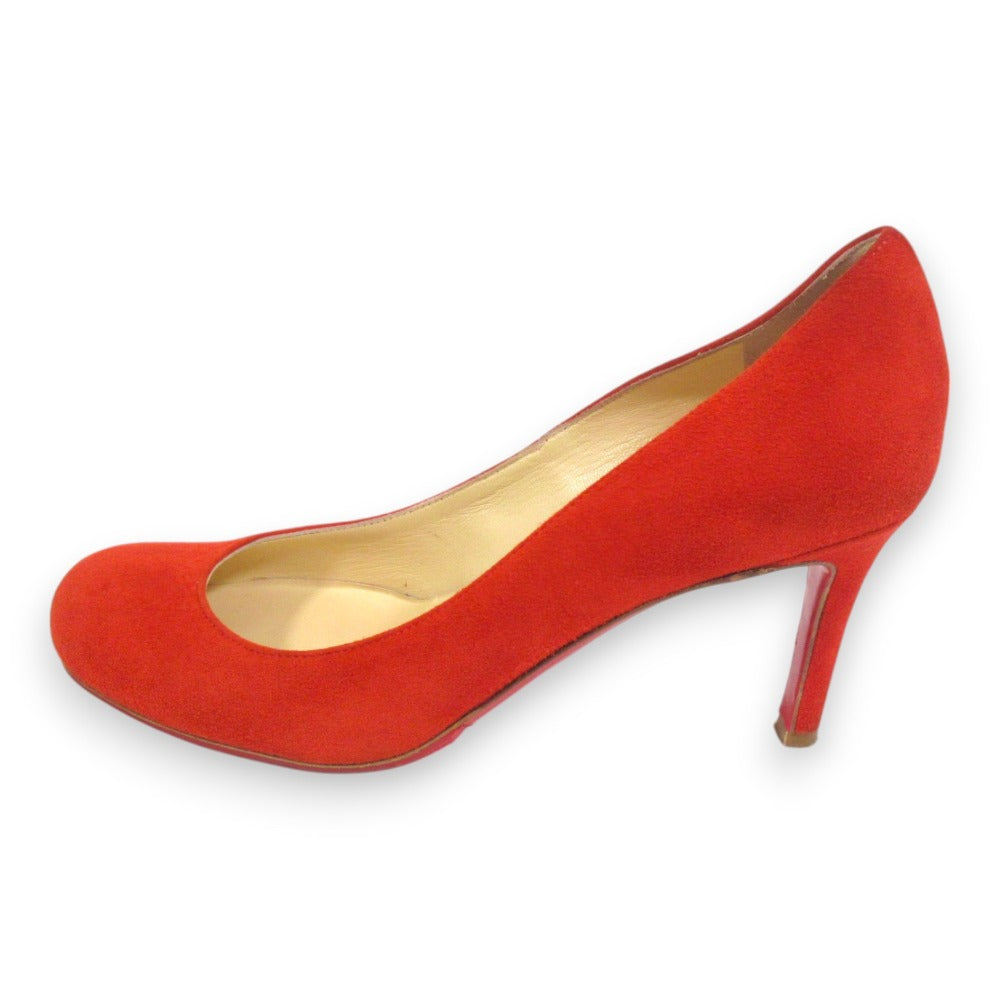 Step into timeless elegance with these Christian Louboutin suede pumps. Crafted for comfort and style, the almond toe and manageable heel height make them perfect for everyday sophistication. Ideal for the discerning woman who appreciates quality and effortless chic, these pumps will become a staple in your curated wardrobe.