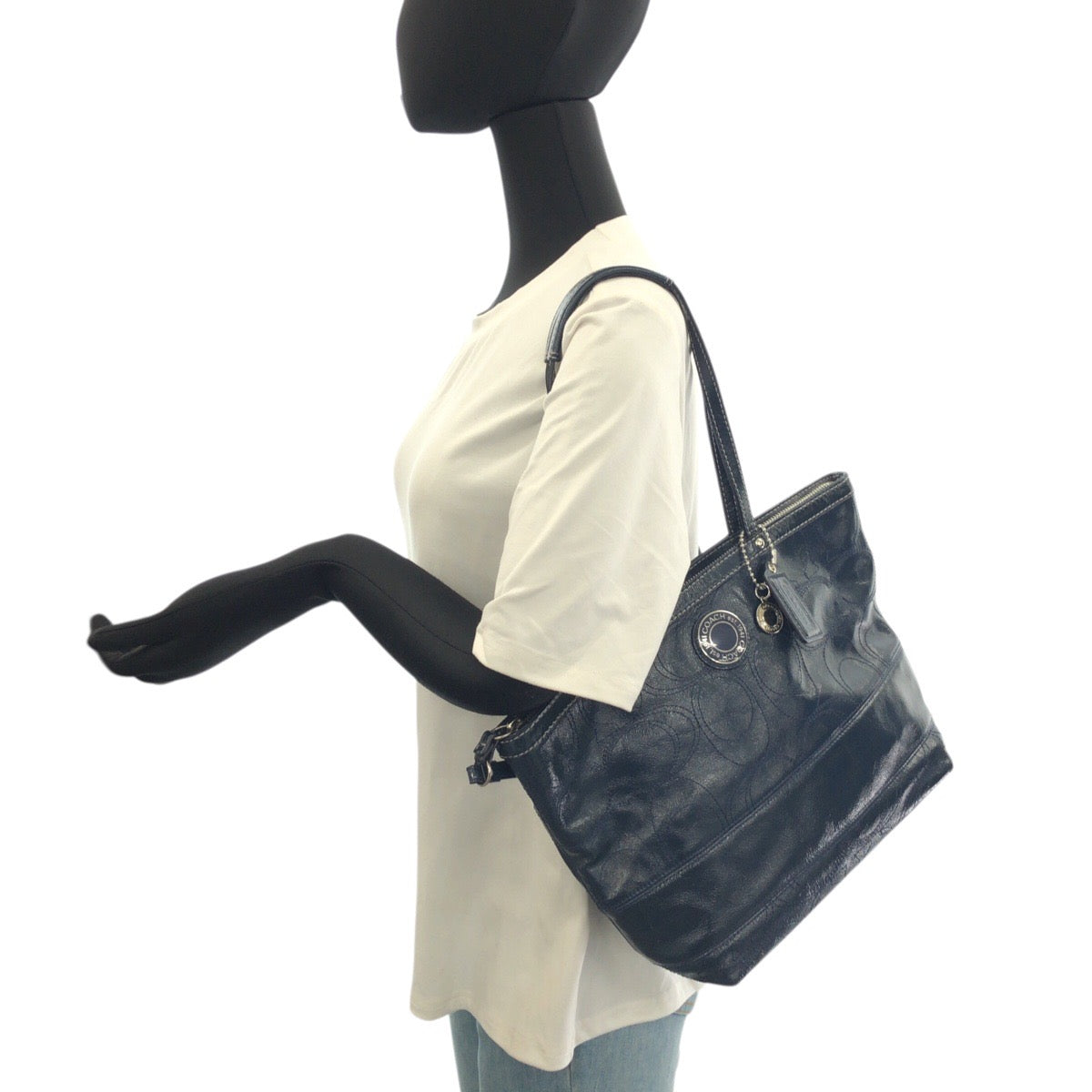 COACH Big Signature Leather 2way Shoulder Bag