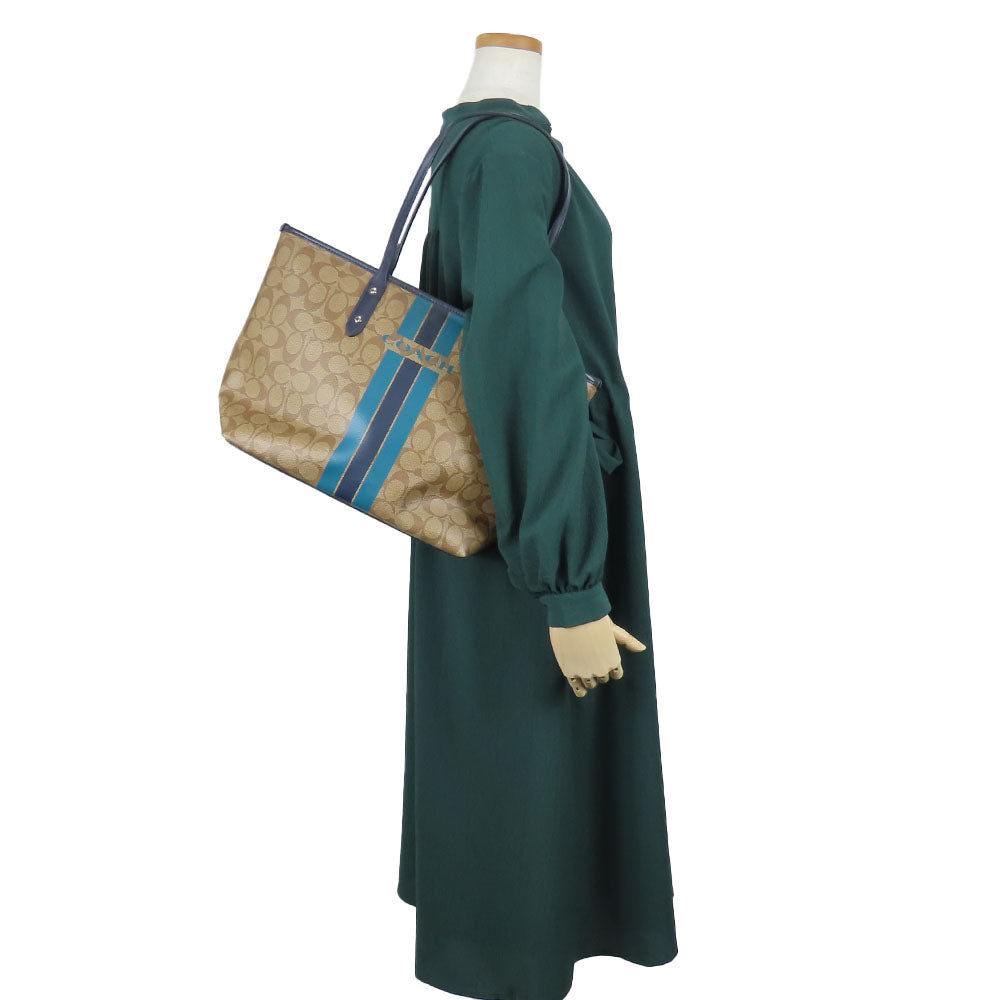 Coach Varsity Stripes Signature PVC Coated Canvas Tote Bag