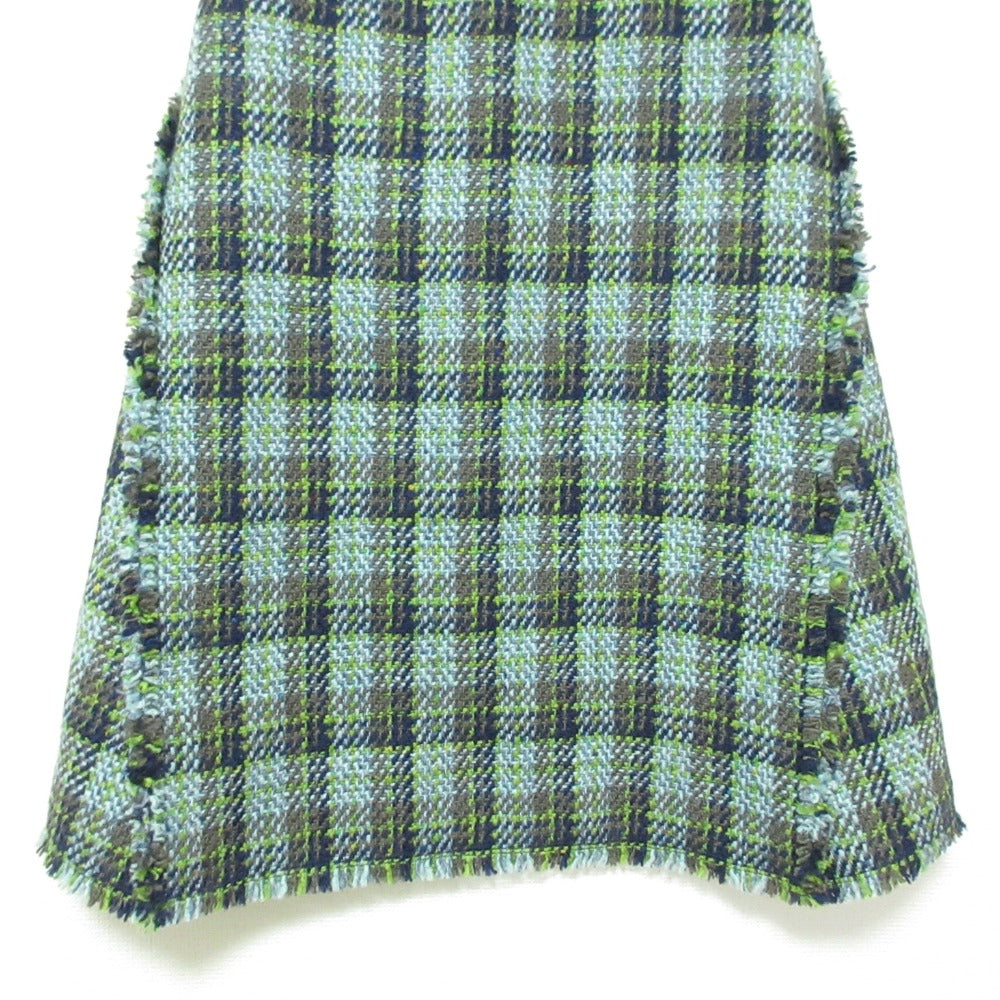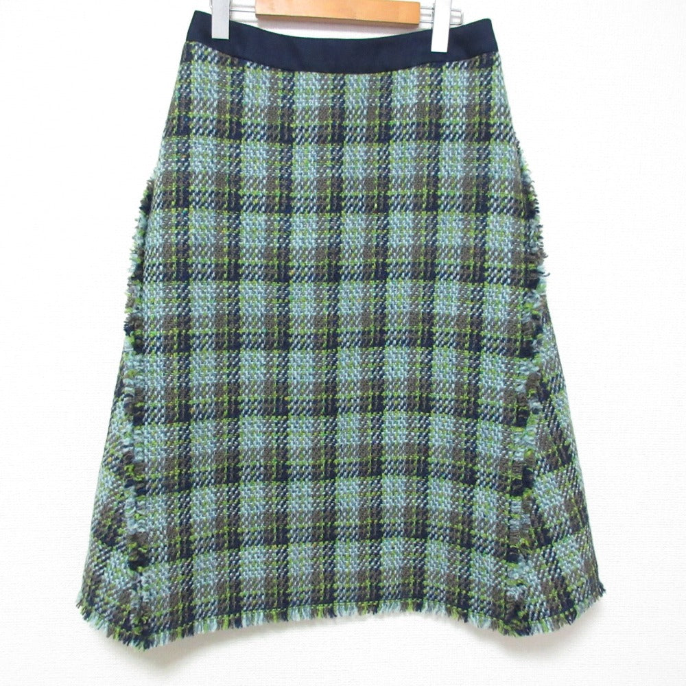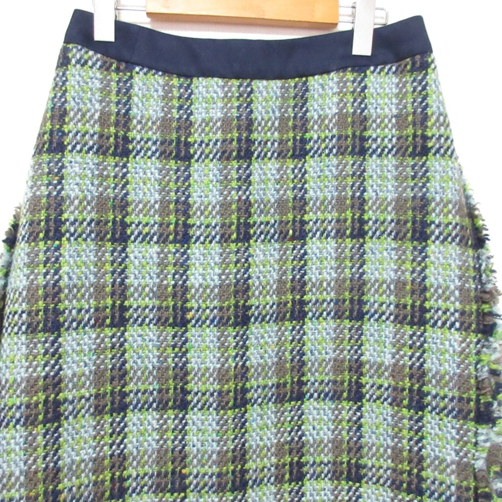 Drawer Check Fringe Tweed Skirt