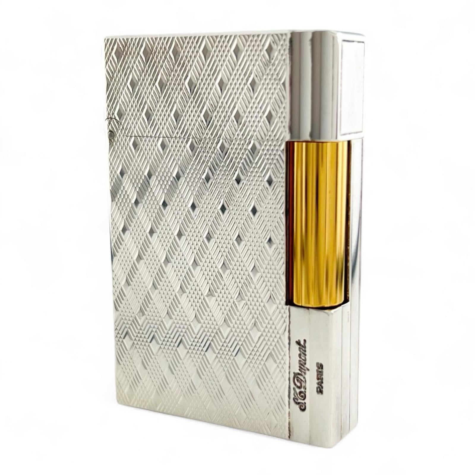 Indulge in timeless elegance with the Dupont Gatsby lighter. Its iconic diamond check pattern exudes sophistication, a perfect accessory for the discerning woman. This refined lighter offers both practicality and a touch of luxury, seamlessly integrating into your elevated lifestyle. A statement piece that sparks conversation and reflects your impeccable taste.