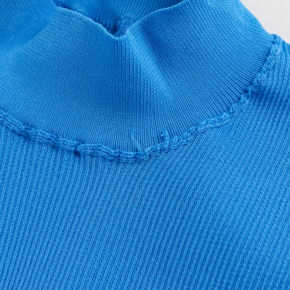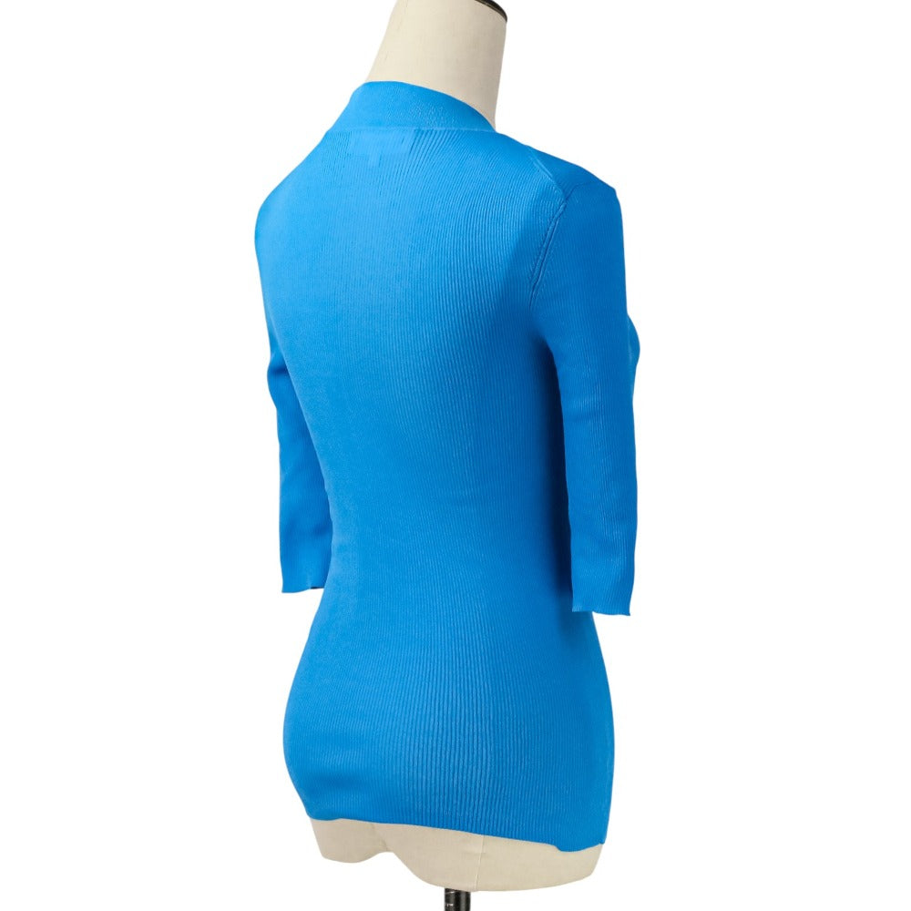 ENFOLD RIB STAND NECK HALF SLEEVE Knit Top