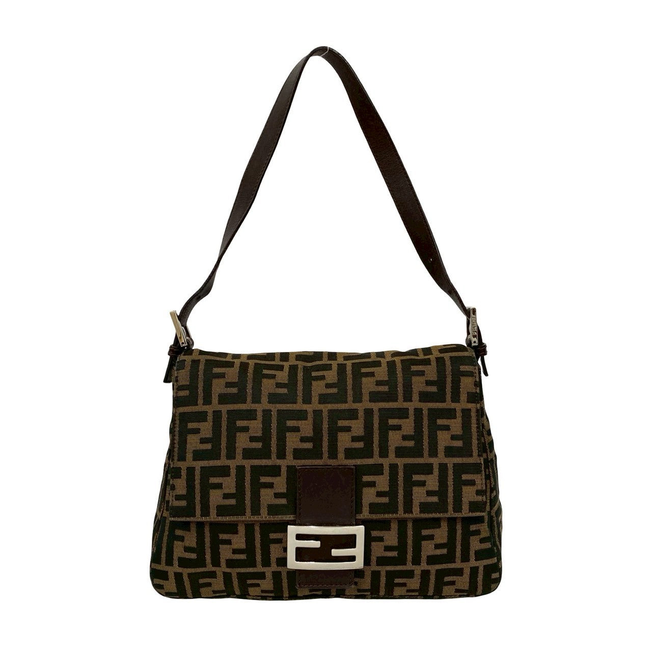 Fendi Mamma Baguette Canvas Leather Shoulder Bag