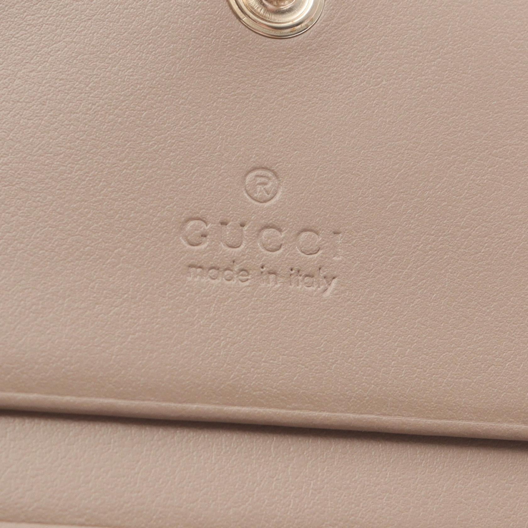 Indulge in timeless elegance with the Gucci GG Marmont Wallet. Crafted in luxurious leather, this compact accessory effortlessly organizes your essentials. Perfect for the discerning woman who appreciates both style and functionality, it's an everyday luxury that complements your sophisticated lifestyle. A chic addition to any handbag.