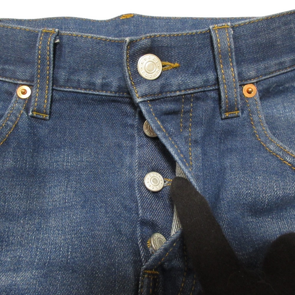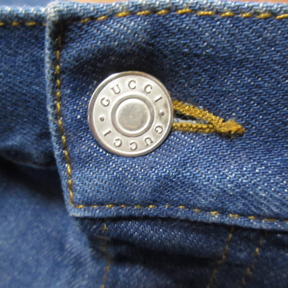 Elevate your everyday style with these Gucci logo patch denim pants. Crafted for comfort and effortless chic, these jeans offer a flattering fit that moves with you. The iconic Gucci logo adds a touch of luxury to this versatile piece, perfect for creating a sophisticated yet relaxed look. A timeless addition to your well-curated wardrobe.
