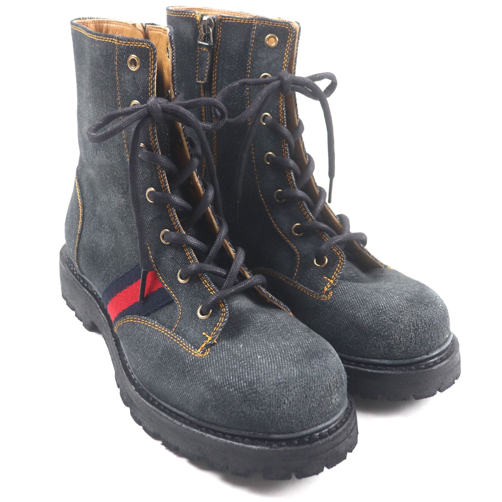 Gucci Side Zip Lace Up Denim Boots