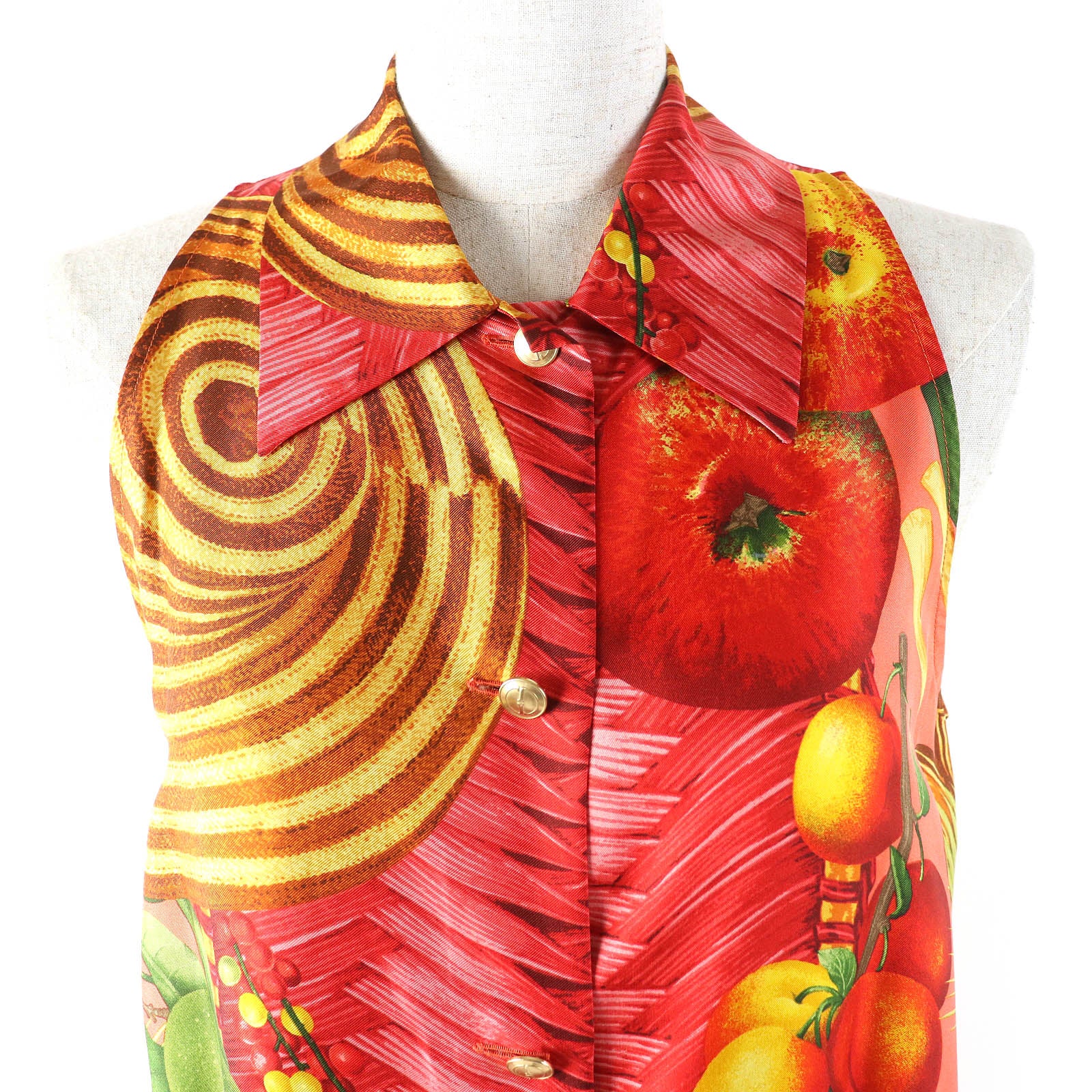 Gucci Tom Ford logo fruit print silk sleeveless shirt