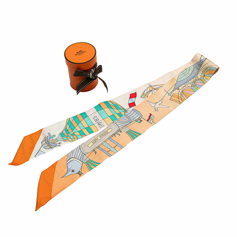Hermès LES FOLIES DU CIEL Twilly Silk Scarf