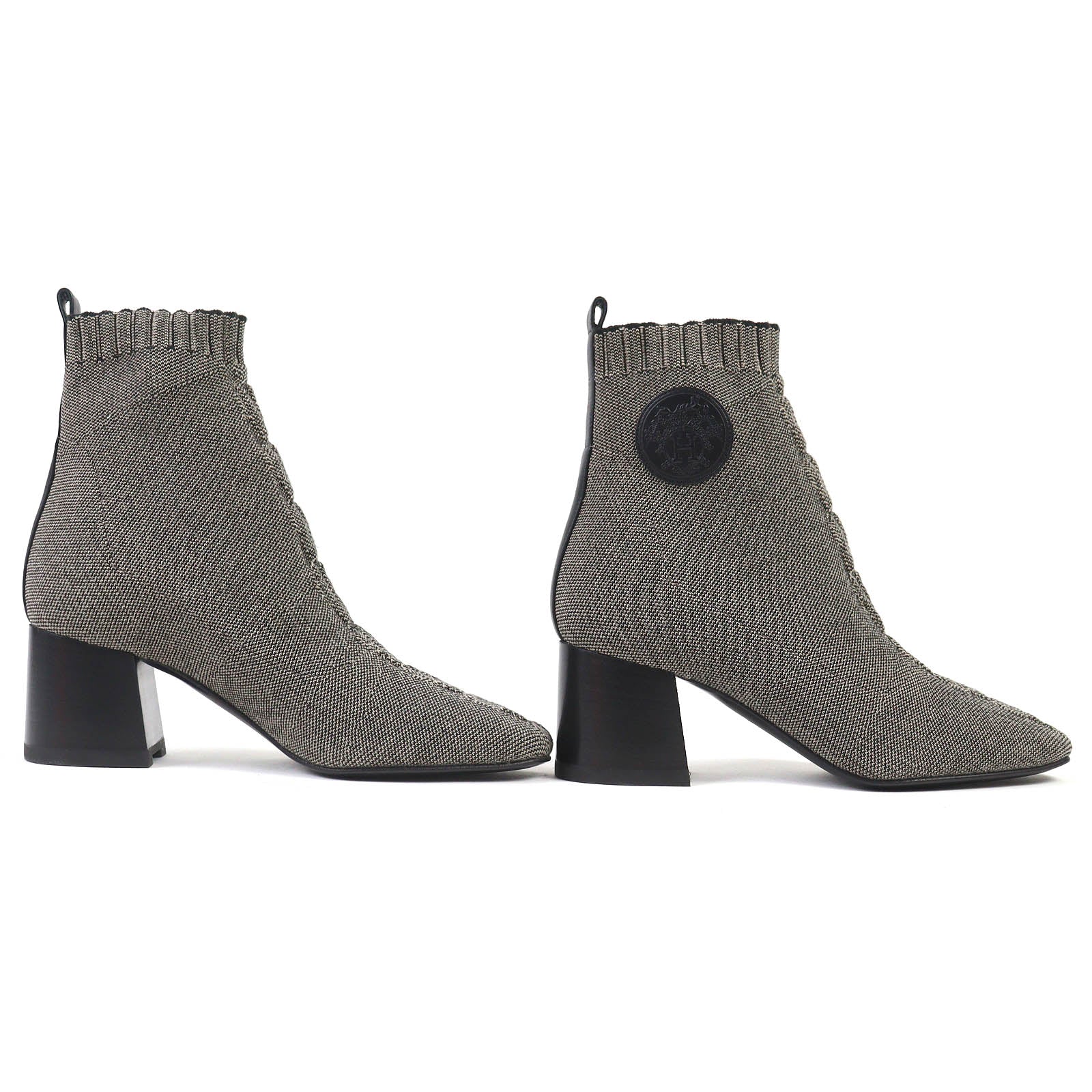 Hermes Volver Knit Technical Fabric Leather Short Boots