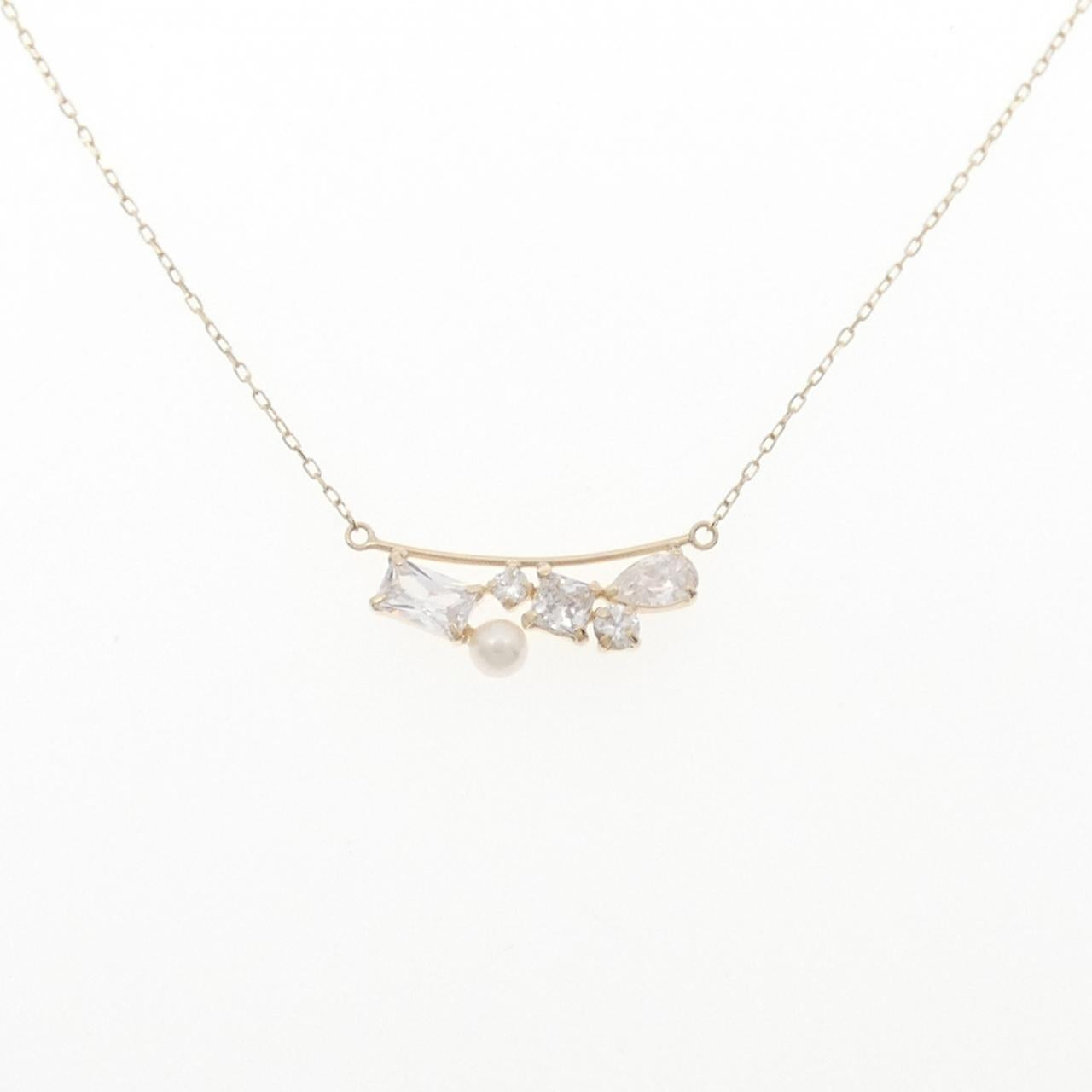 K10YG Cubic Zirconia Freshwater Pearl Necklace