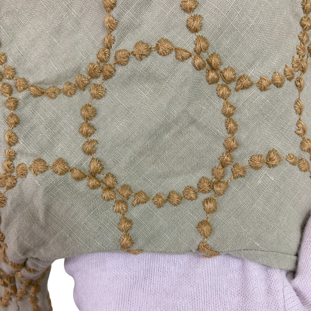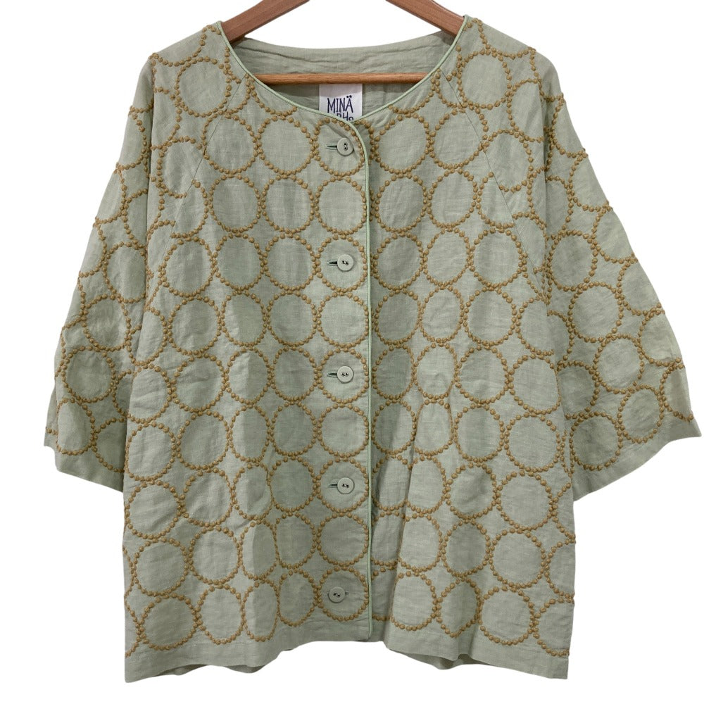 Indulge in the timeless elegance of the mina perhonen tambourine Linen Blouse. Crafted for comfort and style, this blouse drapes beautifully and offers a relaxed fit, perfect for everyday sophistication. The delicate tambourine embroidery adds a touch of whimsy, elevating your wardrobe with subtle artistry and effortless charm. A versatile piece for the discerning woman.