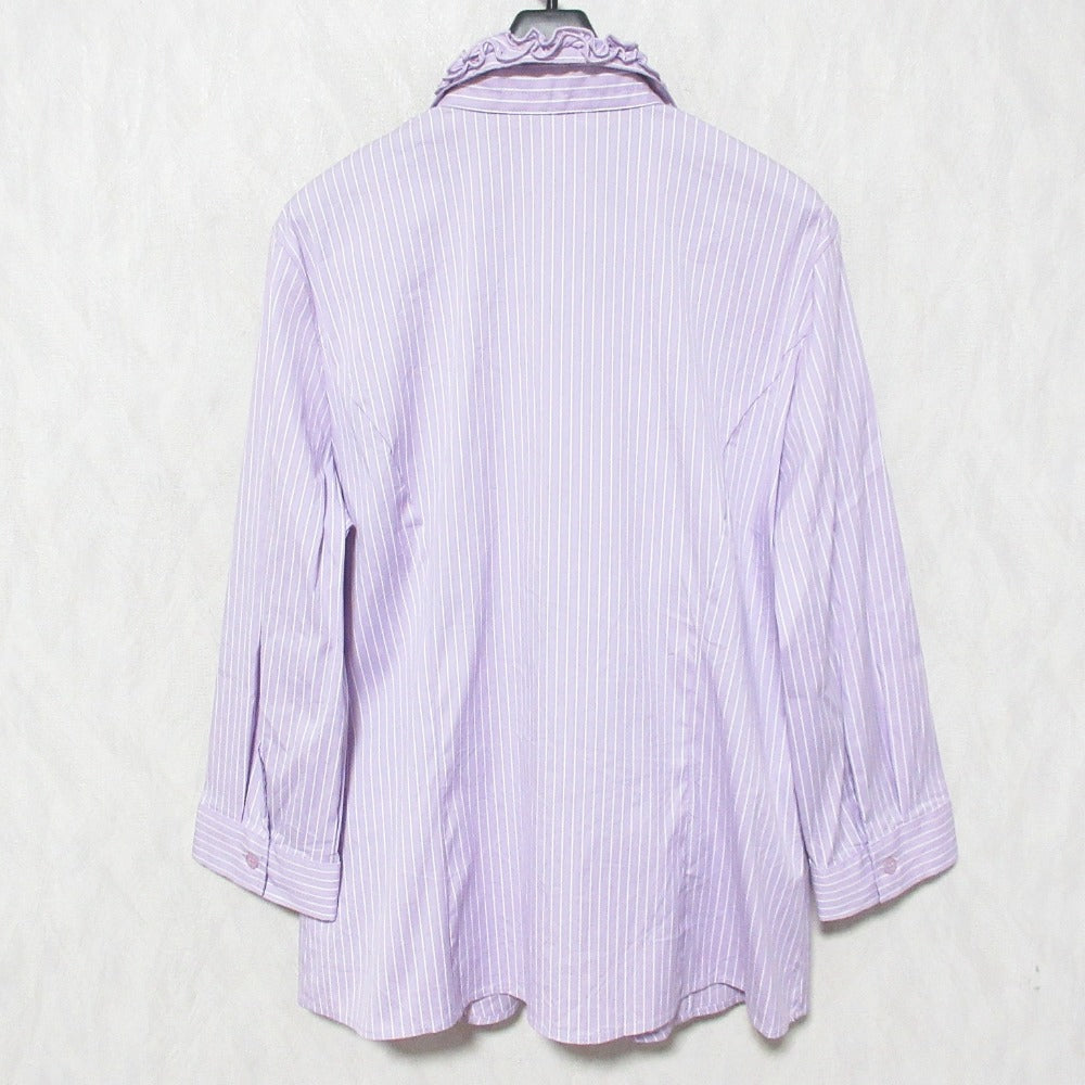 Elevate your everyday style with the NARACAMICIE Pencil Stripe Frill Shirt. This stand collar design adds a touch of sophistication to your wardrobe. The subtle frill detail offers a feminine flair, perfect for the modern woman who appreciates timeless elegance and effortless chic. A versatile piece for both professional and casual settings.