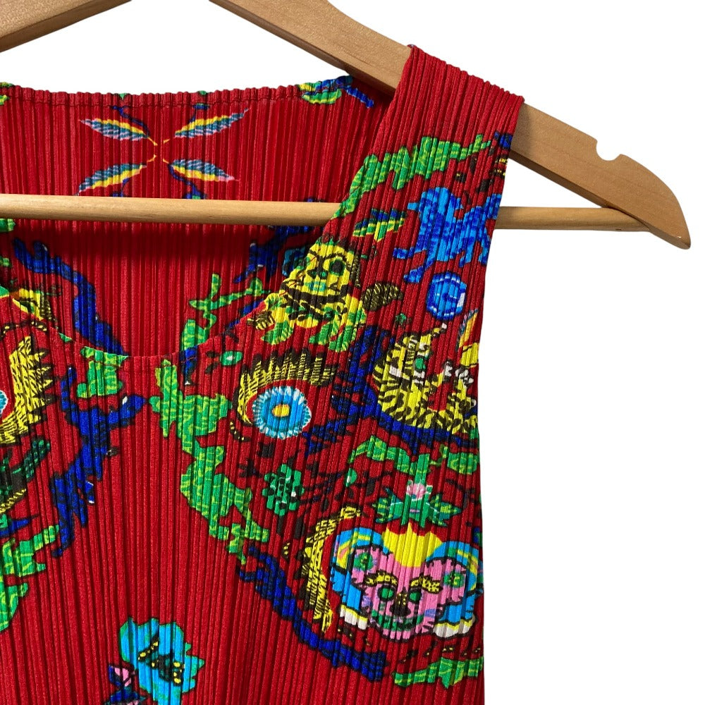 PLEATS PLEASE Dragon Print Sleeveless Top