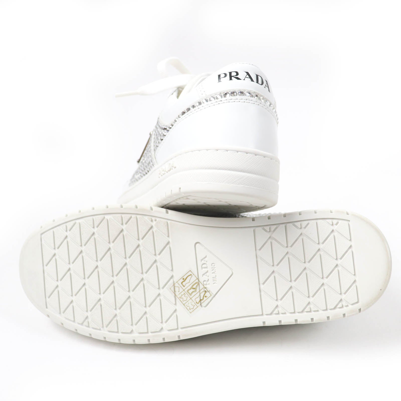 Prada 1E348N Triangle logo with crystal Leather Sneakers