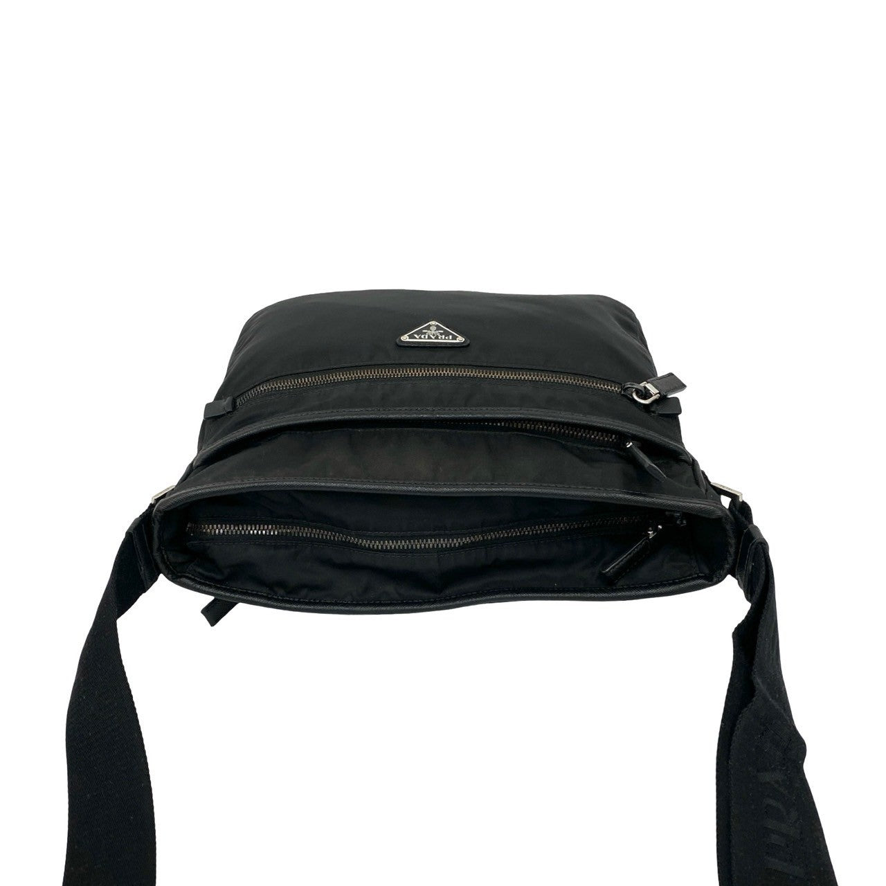Prada Triangle Logo Nylon Saffiano Leather Shoulder Bag