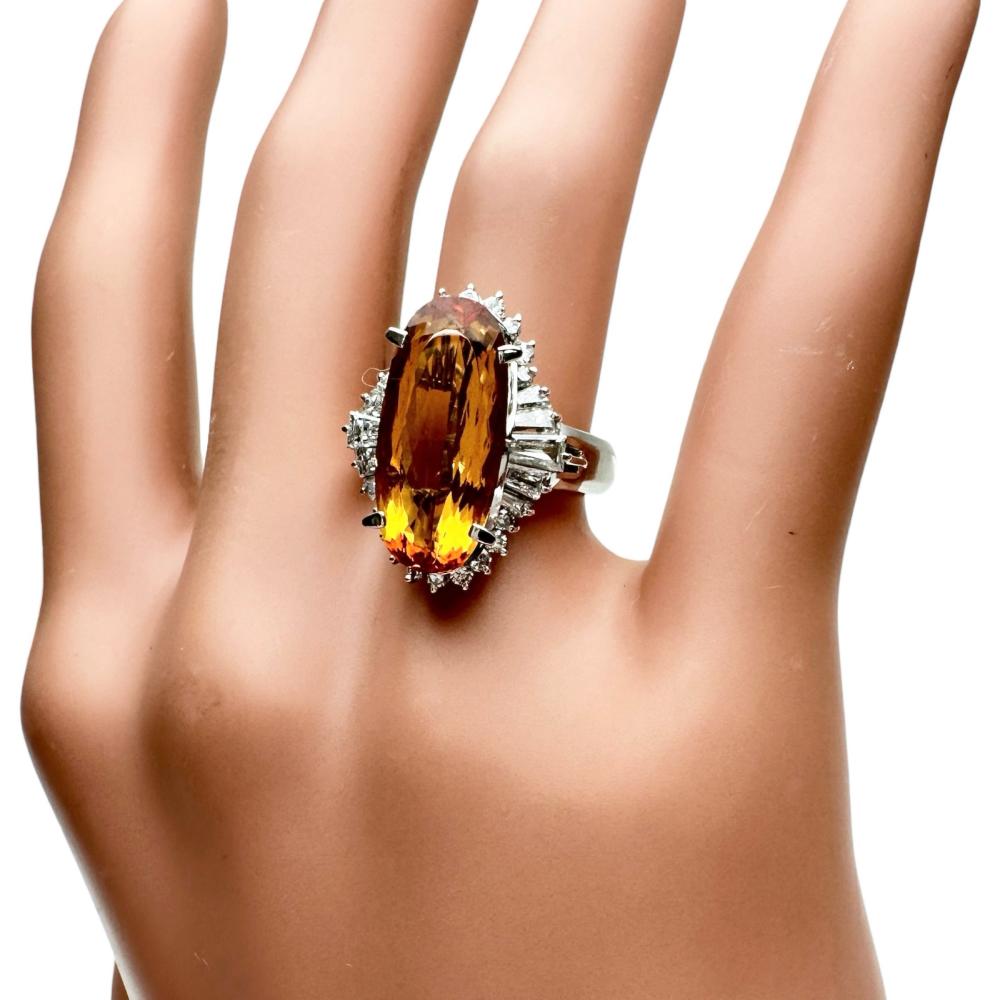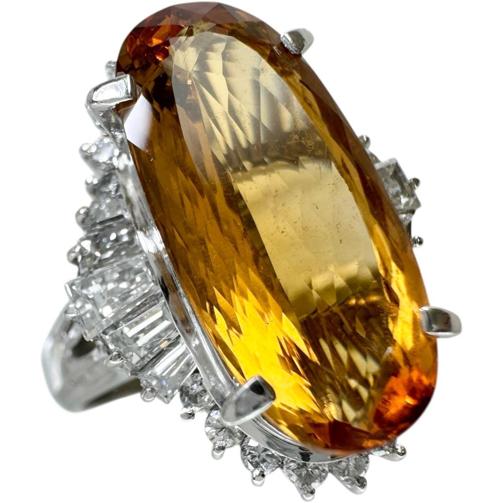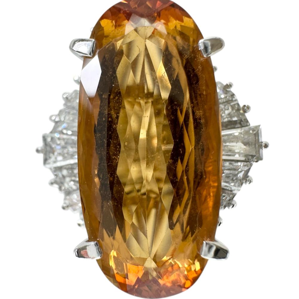 Pt900 Platinum Imperial Topaz Diamond Ring
