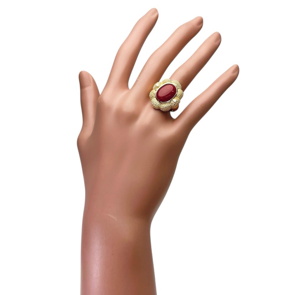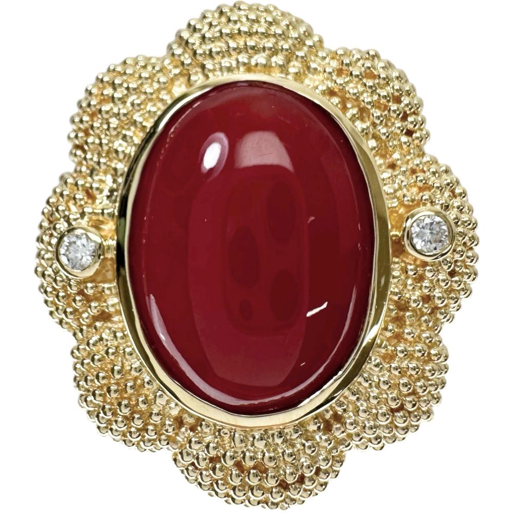 Red Coral Diamond Au750 Ring