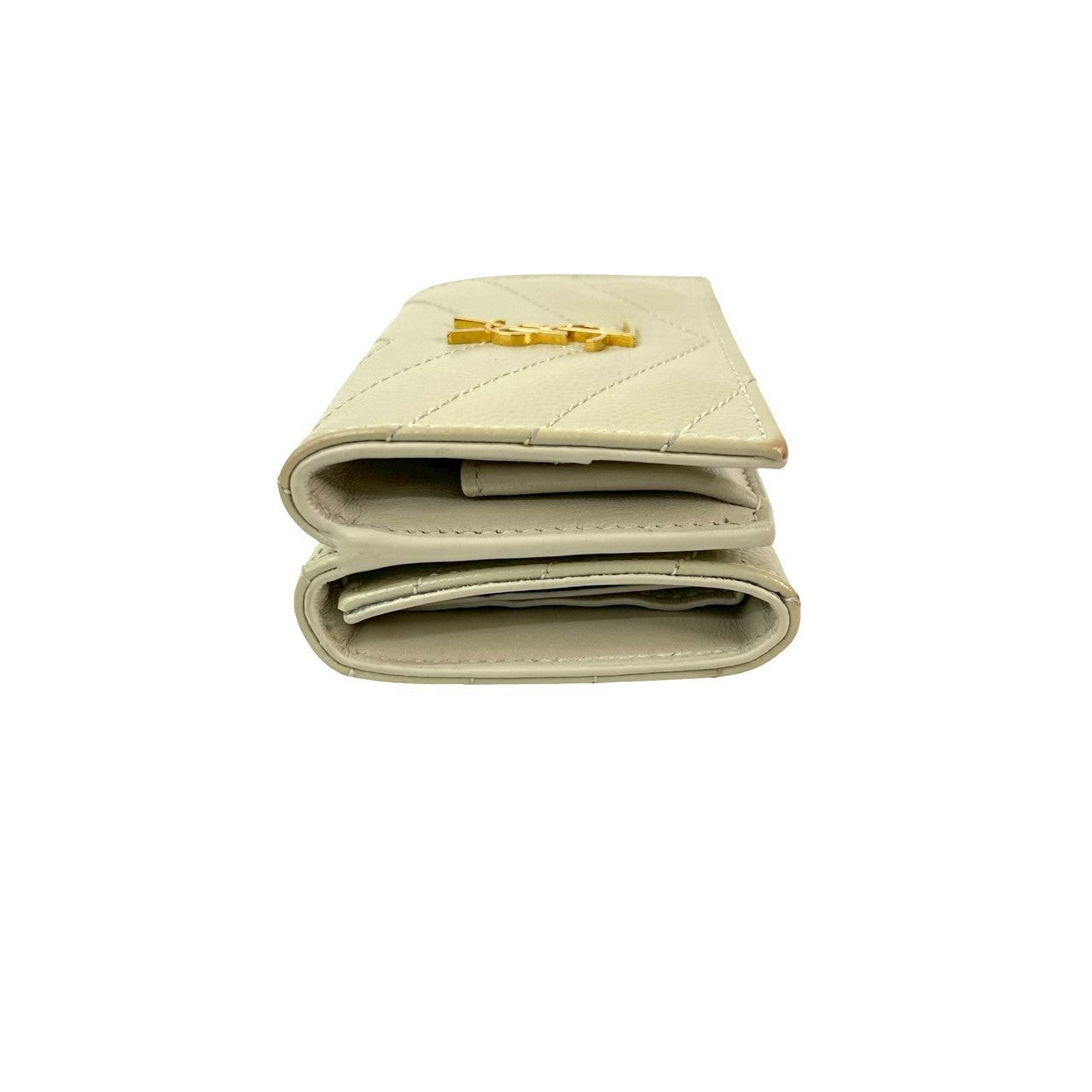 YSL logo hardware, leather exterior