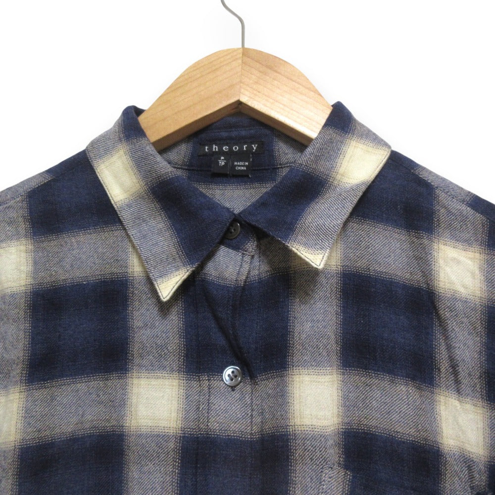 Indulge in the understated elegance of the Theory Ombre Check Shirt. This long-sleeve top effortlessly blends practicality with a touch of sophistication, perfect for your everyday lifestyle. The subtle ombre check pattern adds visual interest, while the comfortable fit drapes beautifully, making it a versatile and stylish addition to your wardrobe.