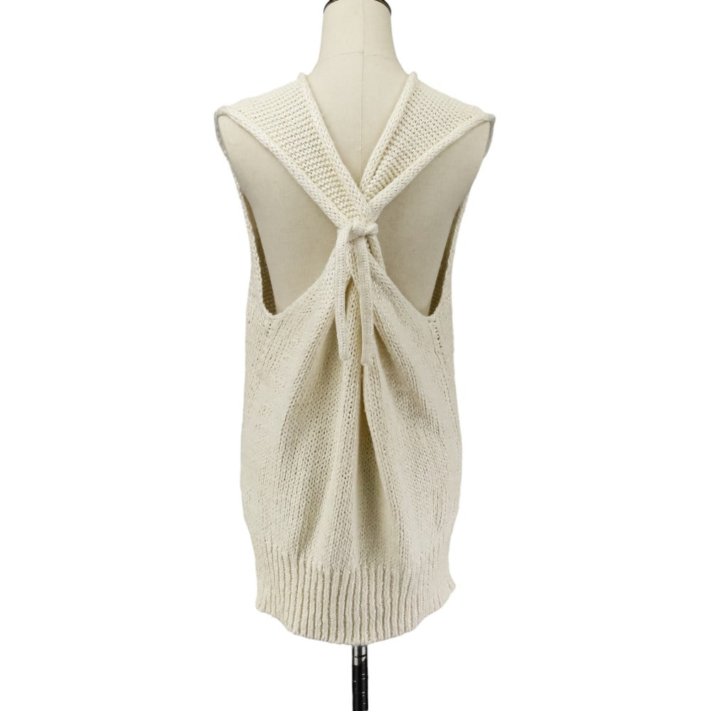 BLAMINK Silk Linen Back Ribbon Vest