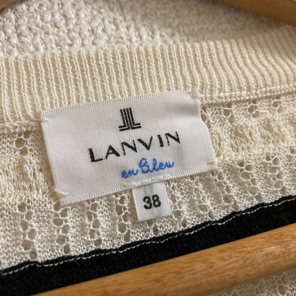 LANVIN en Bleu Border Knit Short Cardigan