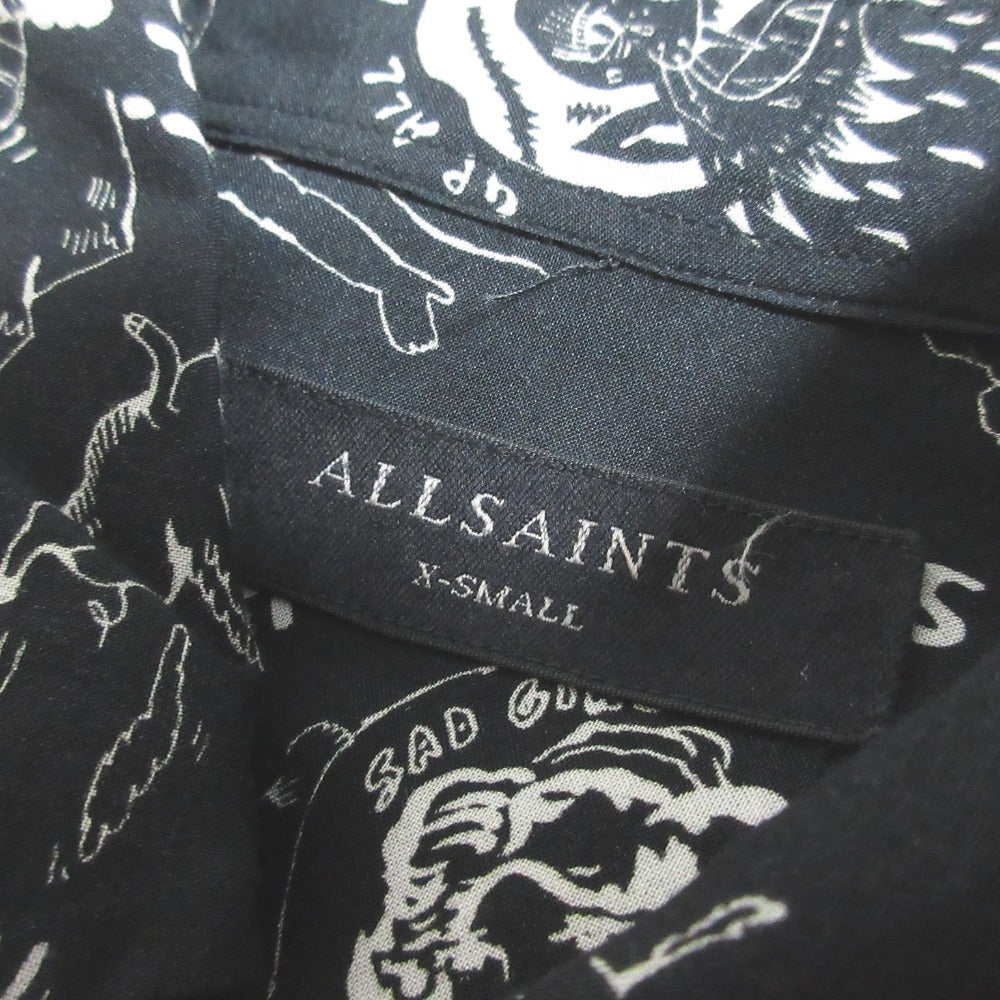 Elevate your everyday style with this All Saints printed rayon shirt. Crafted for comfort and designed with a flattering fit, this versatile piece effortlessly transitions from casual outings to sophisticated gatherings. The soft rayon fabric drapes beautifully, ensuring a comfortable and stylish look for the modern woman. A timeless addition to your wardrobe.