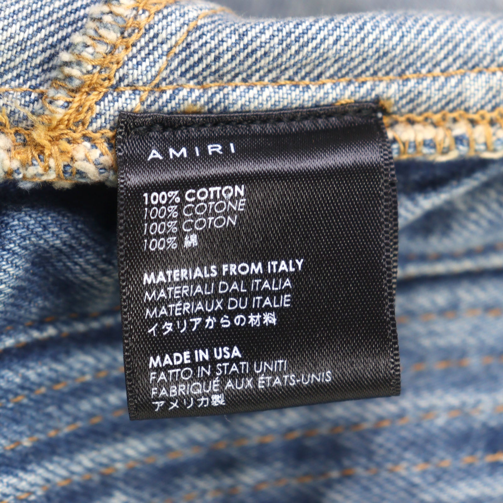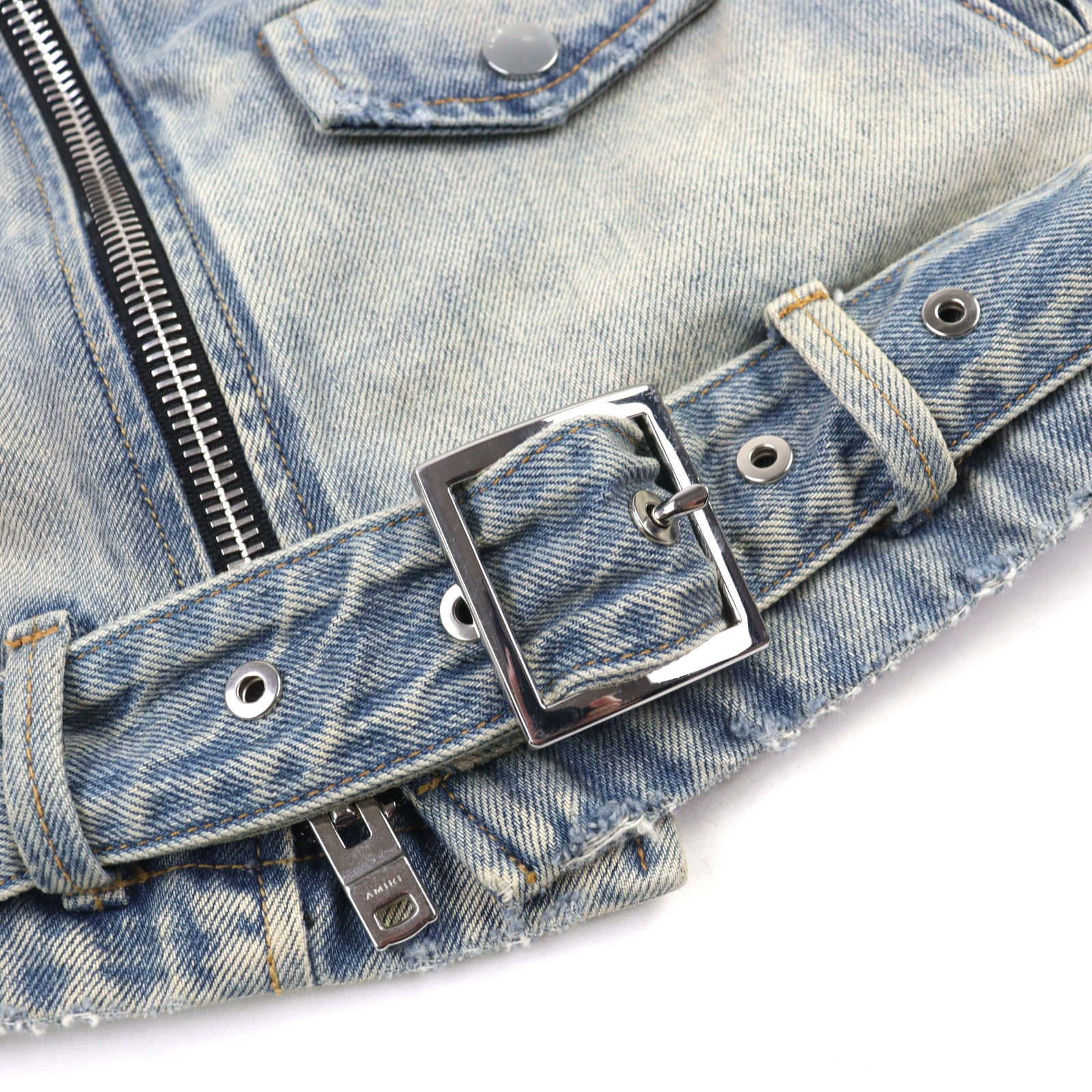 AMIRI Damage Denim Metal Logo Denim Jacket