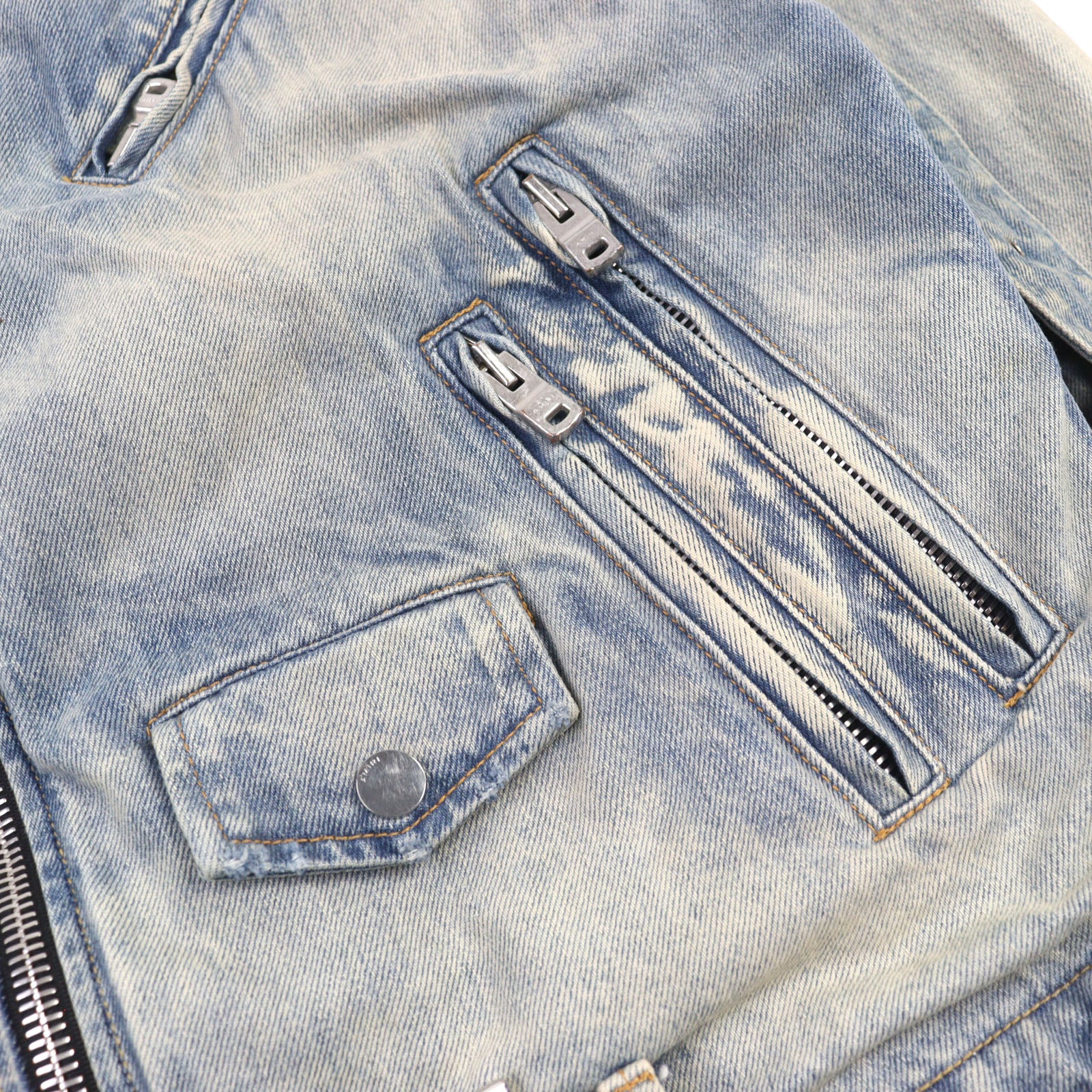 Unleash your inner rockstar with the AMIRI Damage Denim Metal Logo Denim Jacket. This isn't just a jacket; it's a statement. Crafted with meticulous attention to detail, the distressed denim exudes a rebellious, lived-in vibe, while the subtle metal logo adds a touch of undeniable luxury. Designed for the modern individual who values both practicality and a bold, confident lifestyle, this jacket drapes effortlessly, providing a comfortable and stylish fit. Whether you're hitting the city streets or layering up for a casual night out, the AMIRI Denim Jacket is the perfect embodiment of edgy sophistication. Elevate your wardrobe and embrace the spirit of effortless cool.