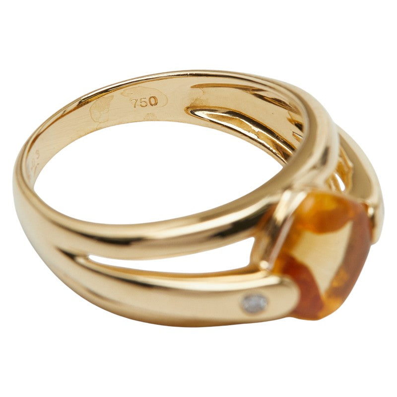 Au750 Yellow Gold Citrine Topaz Diamond Ring
