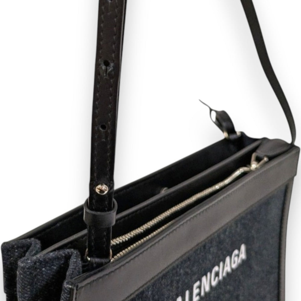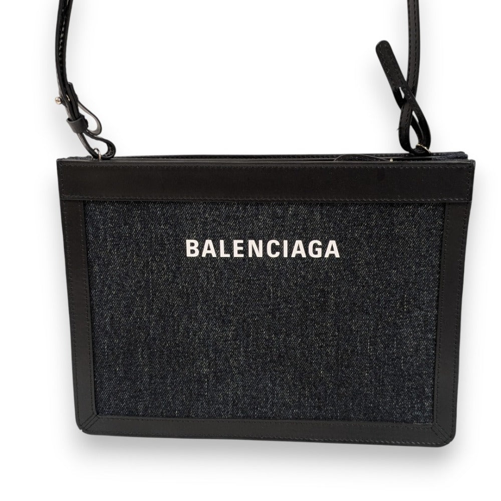 Balenciaga Navy Pochette Denim Leather Shoulder Bag