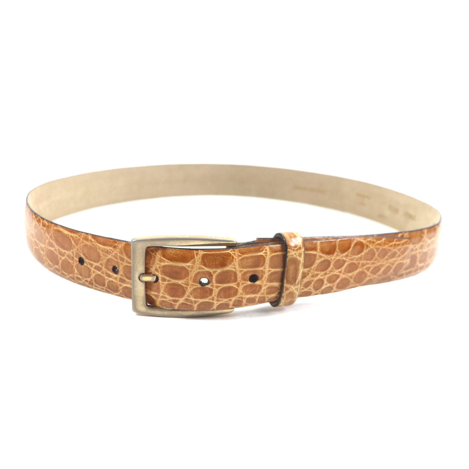 Elevate your everyday style with the Brioni Crocodile Belt. This exceptional belt showcases Brioni's dedication to impeccable craftsmanship and luxurious materials. The genuine crocodile leather exudes sophistication and durability, promising a long-lasting addition to your wardrobe. A subtle yet distinctive logo-engraved buckle adds a touch of understated elegance, making it a perfect complement to both tailored suits and more relaxed ensembles. Designed for the discerning individual, this belt seamlessly blends practicality with a refined lifestyle, ensuring you always make a statement of timeless quality and effortless style. Experience the epitome of Italian luxury with this Brioni essential.