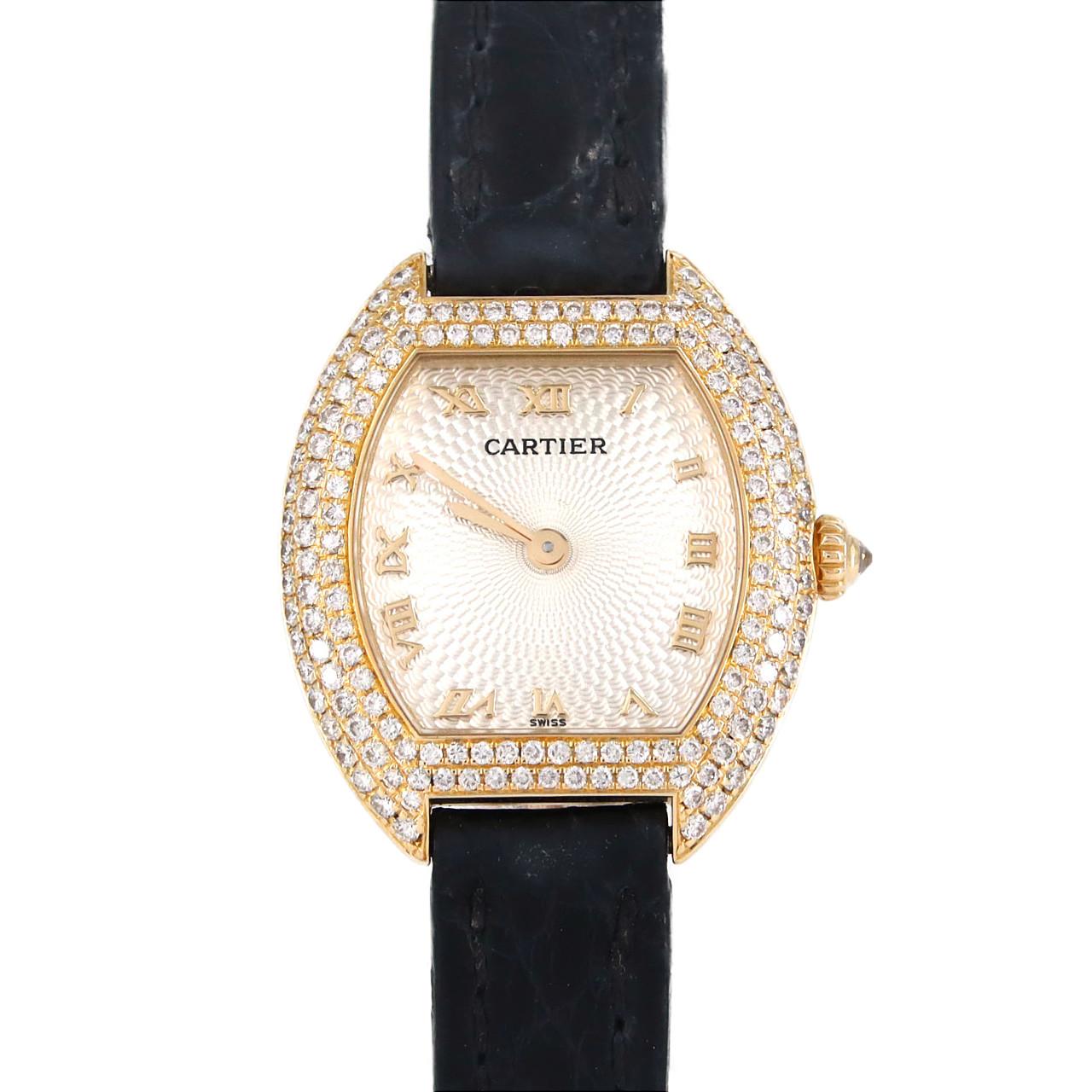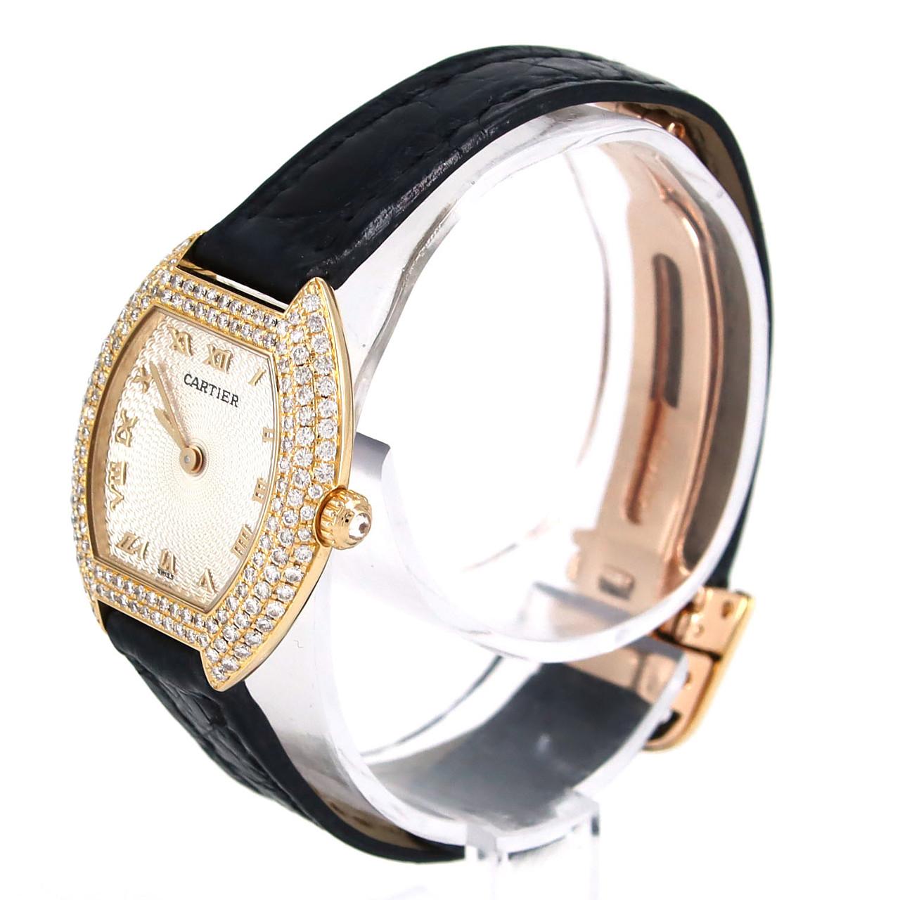 Indulge in timeless elegance with the Cartier Tonneau 1910 YG Watch. This sophisticated timepiece, crafted in radiant yellow gold, whispers of vintage charm and understated luxury. Its distinctive shape effortlessly complements any wrist, making it the perfect accessory for the discerning woman who appreciates refined style and enduring quality.