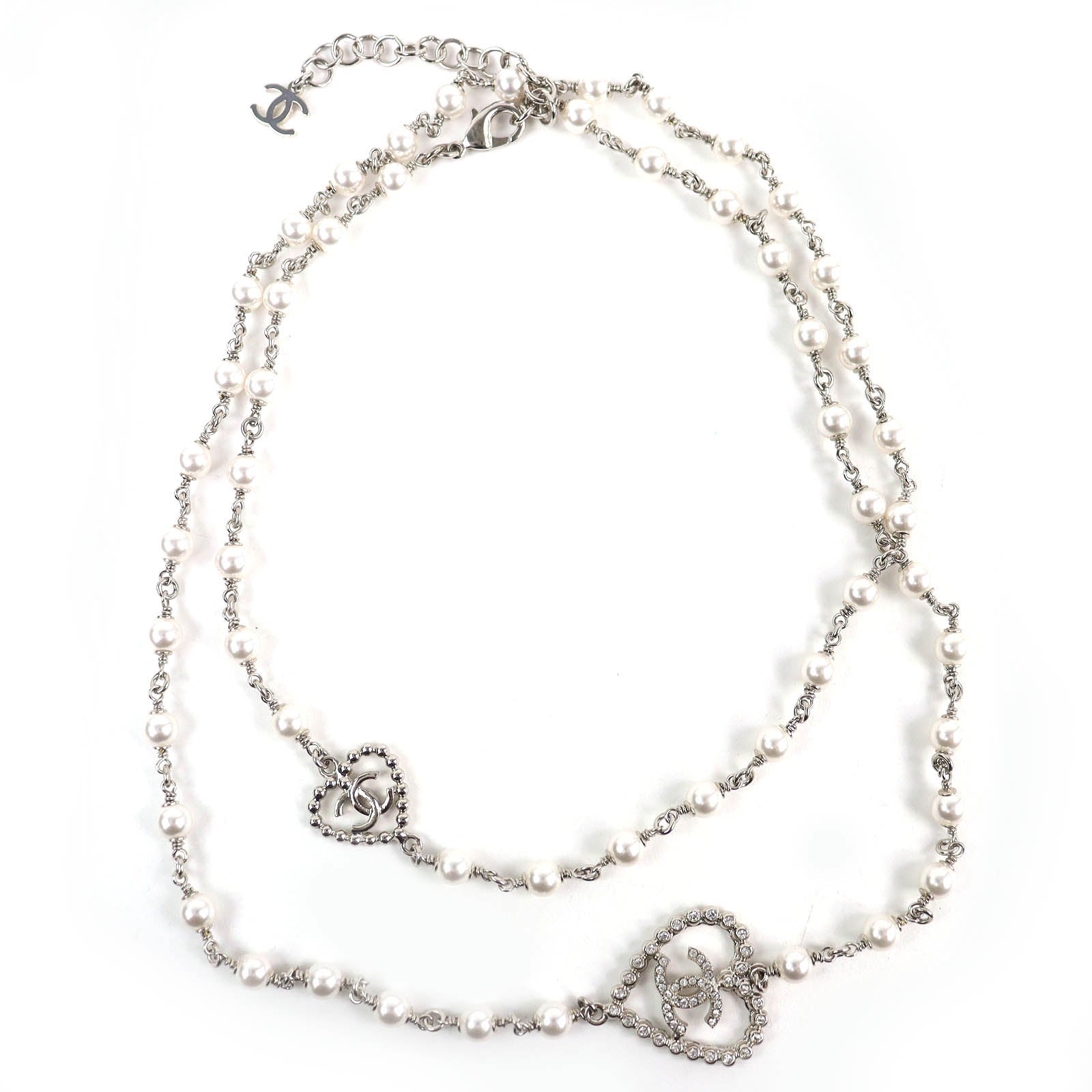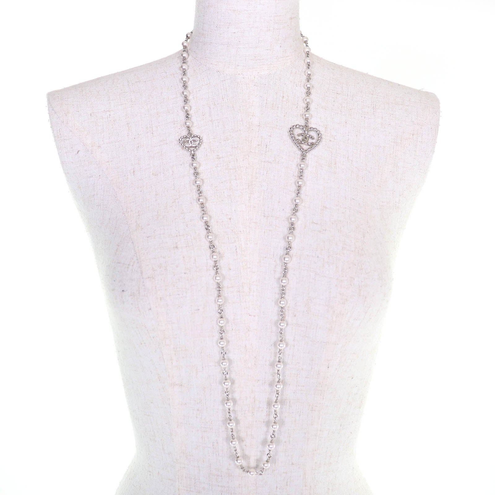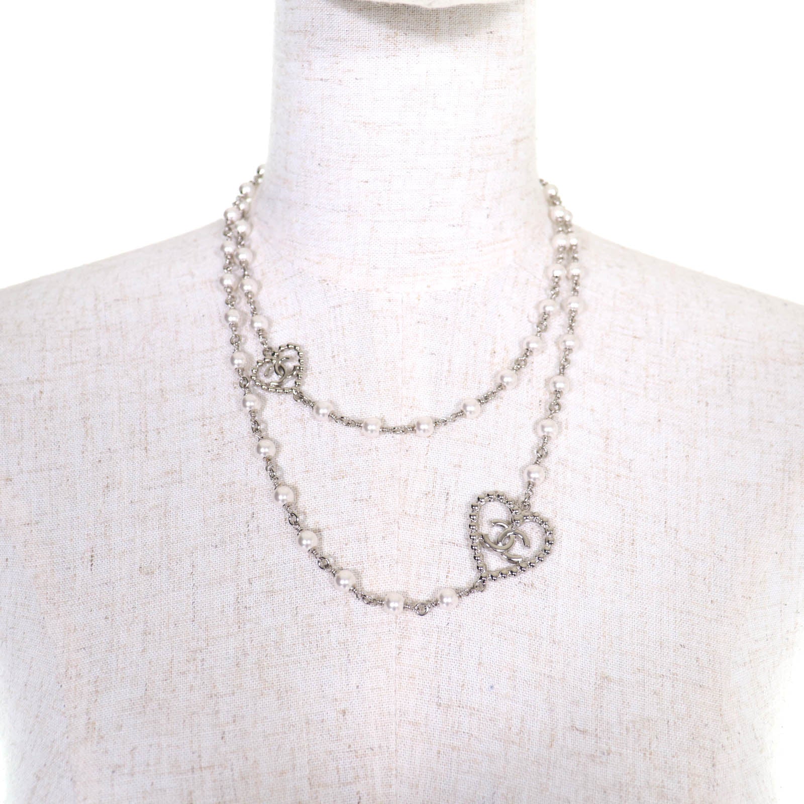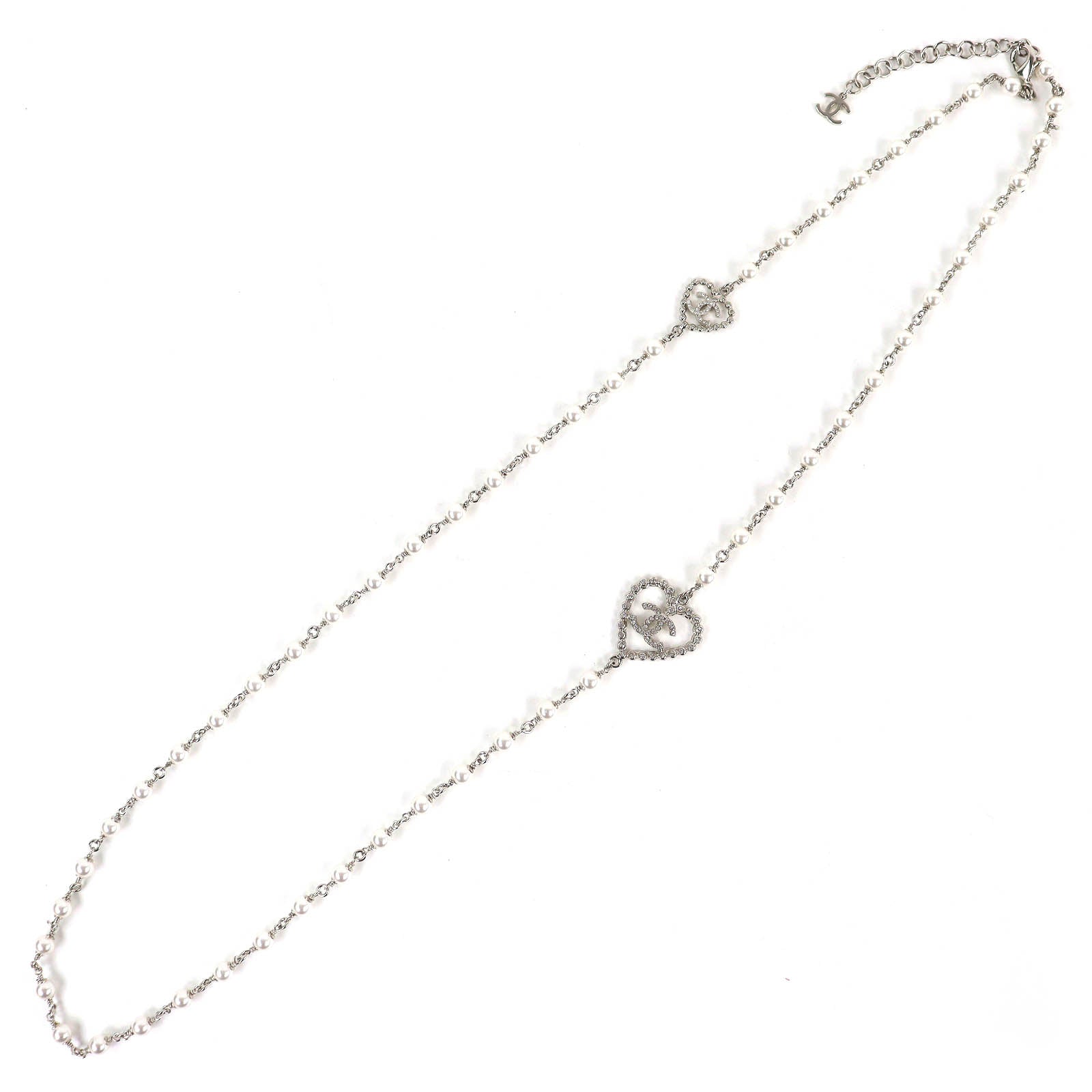 CHANEL COCO Mark Heart Pearl Rhinestone Necklace