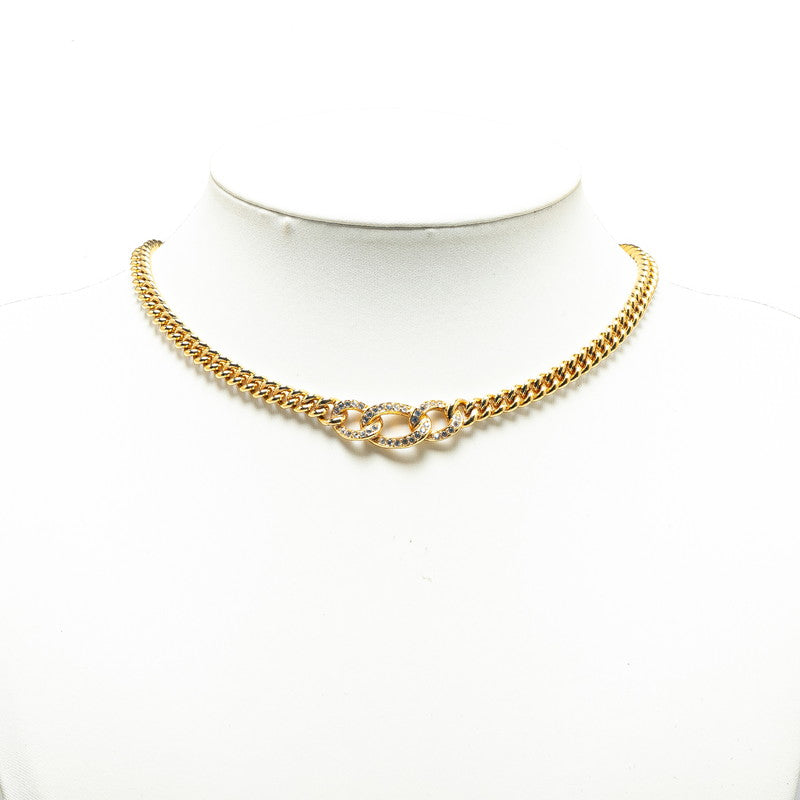 Dior Gold Plated Triple Round Rhinestone Necklace