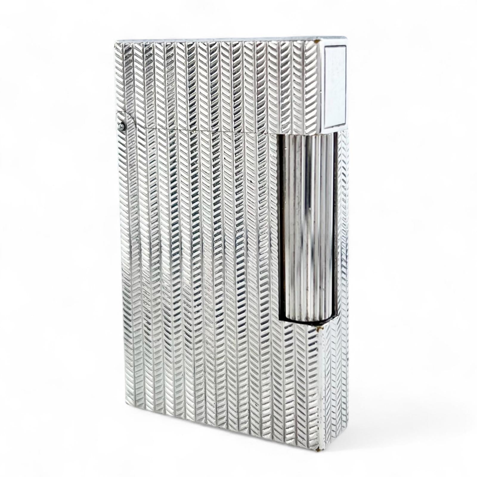 Elevate your everyday with the Dupont Herringbone Lighter. A sophisticated smoking accessory designed for the discerning woman. Its elegant design and comfortable feel make it a perfect blend of practicality and luxury. Add a touch of timeless style to your lifestyle, whether at home or on the go. A true statement piece.