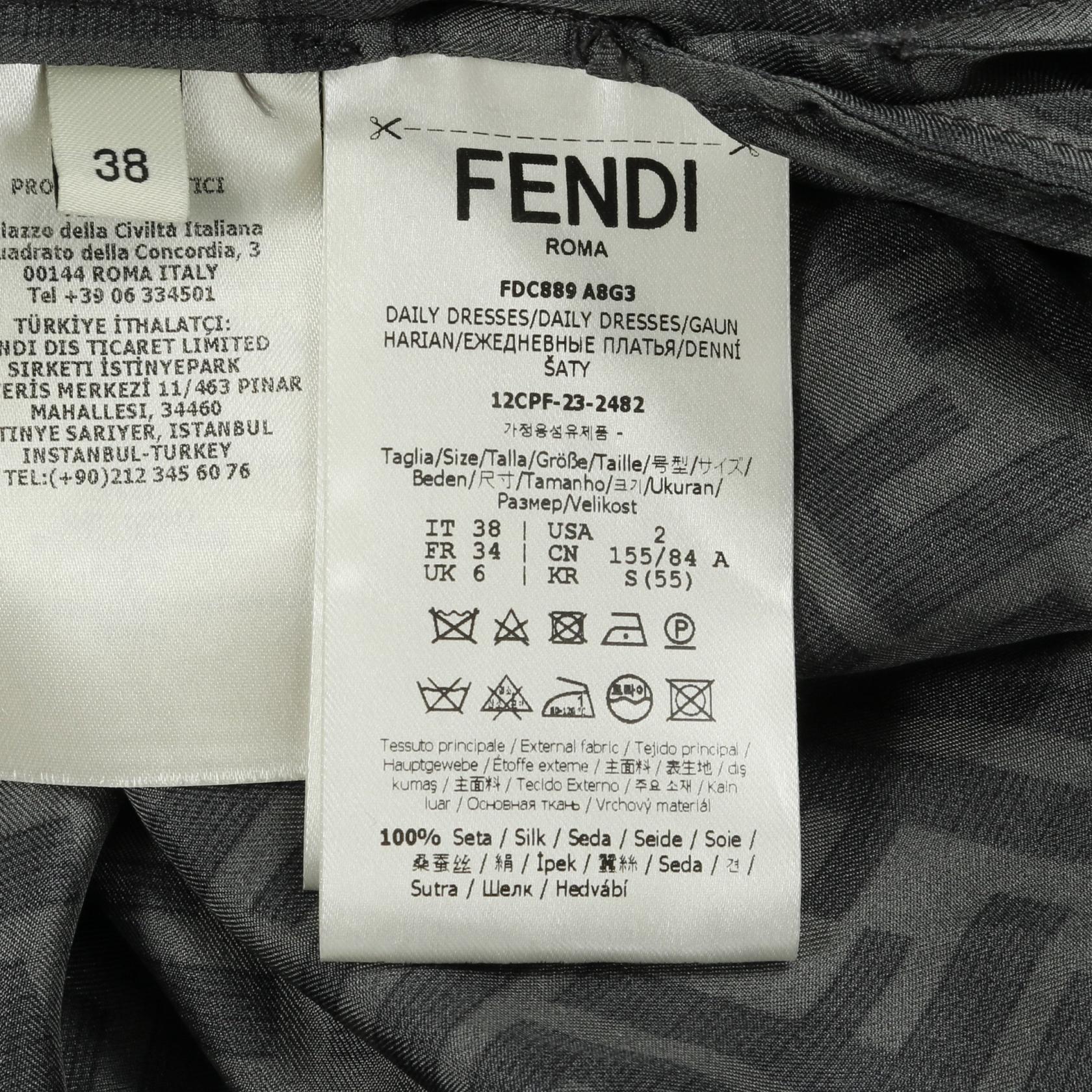 Indulge in timeless elegance with this Fendi Zucca Silk Dress. Crafted for the discerning woman, this dress offers a flattering silhouette and luxurious feel. Perfect for both sophisticated daytime events and elegant evenings, it seamlessly blends practicality with a touch of iconic Fendi style. A versatile addition to any wardrobe.