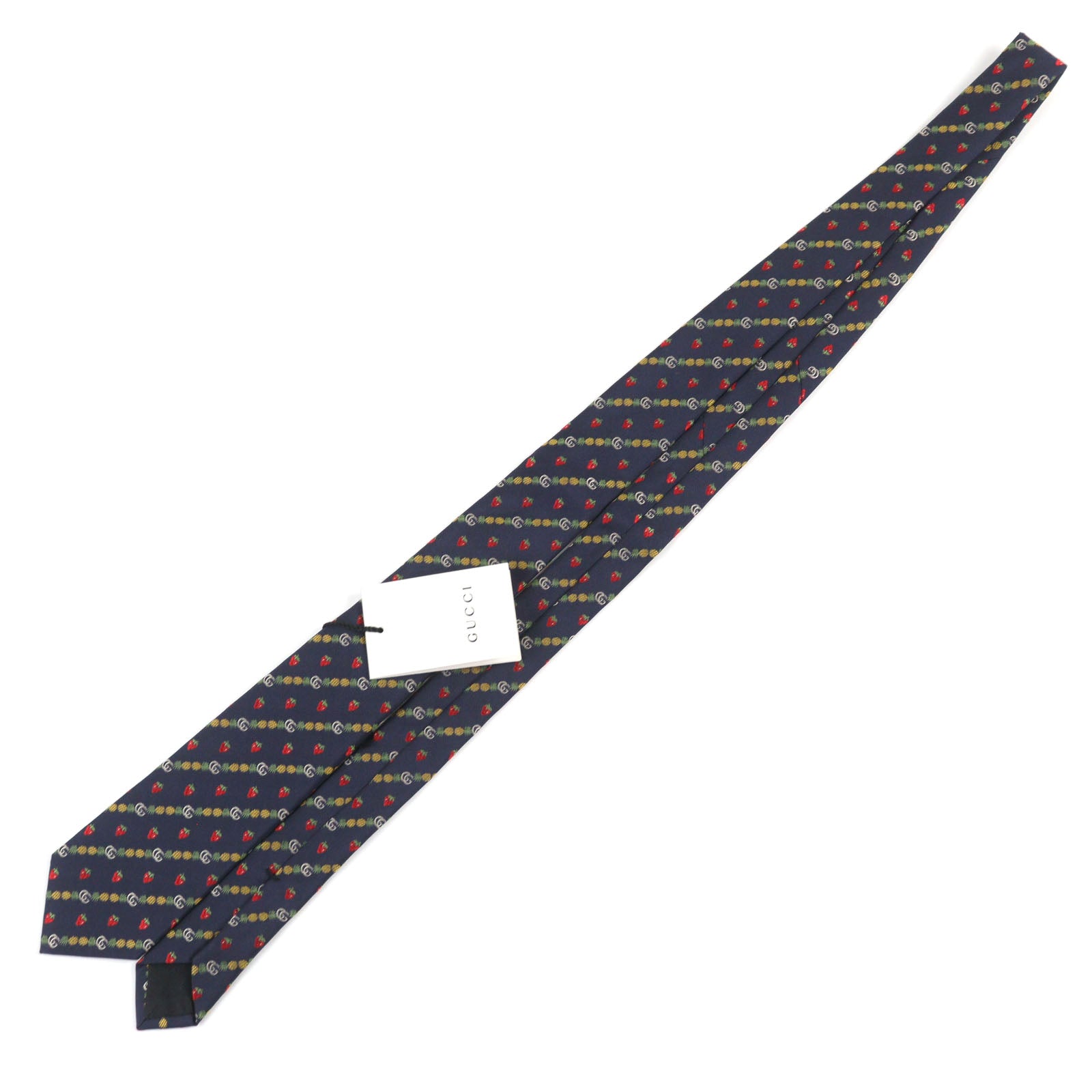 Gucci GG logo Bee Pineapple Strawberry Silk Tie