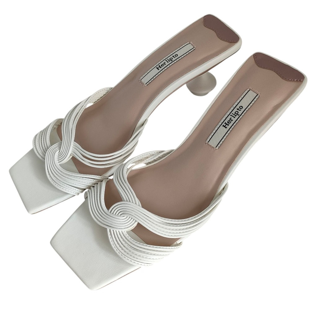 Her lip to Leather Open Toe Heel Sandals