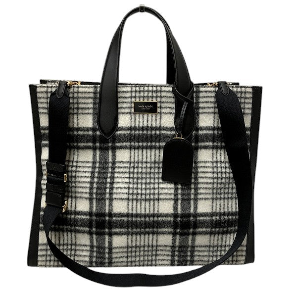 Kate Spade Manhattan Studio Plaid Polyester Cowhide Smooth Leather Tote Bag