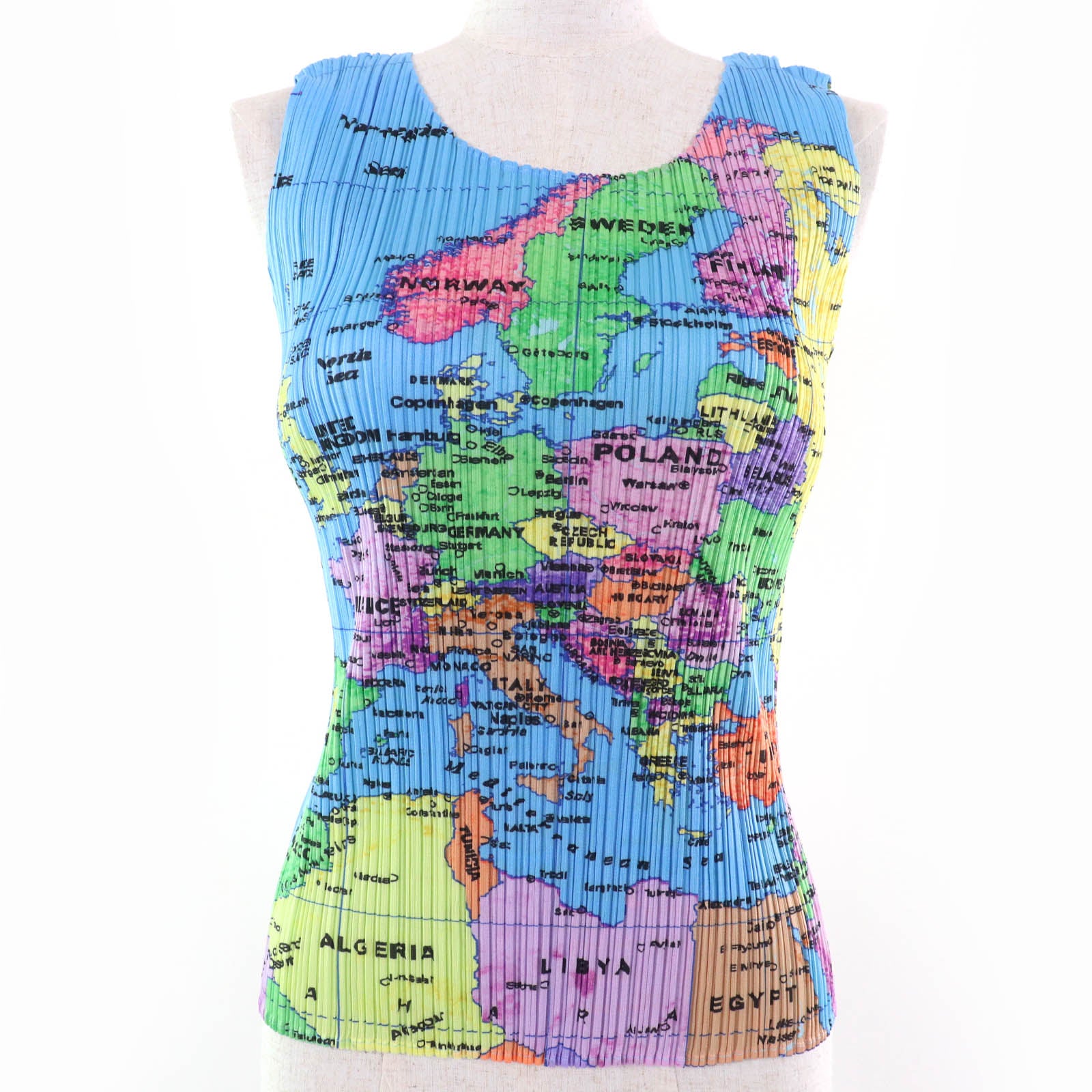 PLEATS PLEASE World Map T-shirt Sleeveless Top
