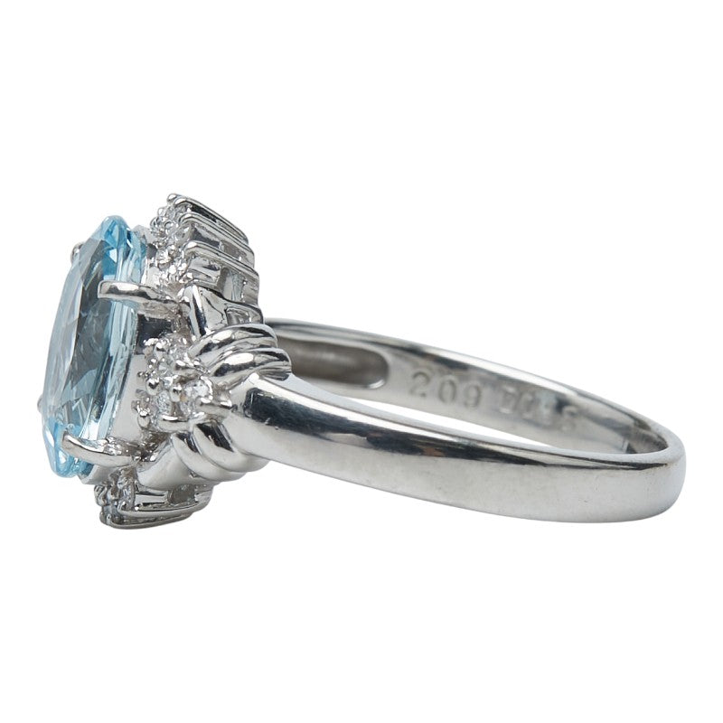Pt900 Platinum Aquamarine Diamond Ring
